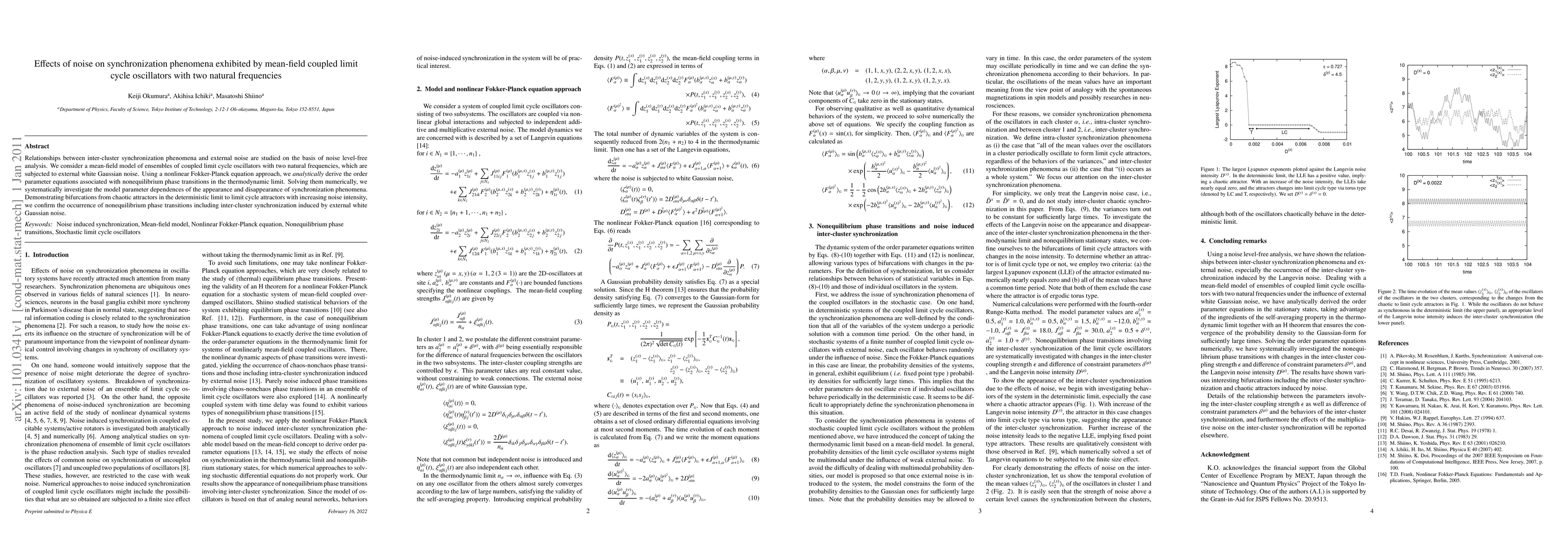 This paper studies the impact of external noise on synchronization phenomena in ensembles of coupled limit cycle oscillators using a mean-field model and a nonlinear Fokker-Planck equation approach. It reveals how increasing noise intensity can lead to nonequilibrium phase transitions and inter-cluster synchronization, demonstrating bifurcations from chaotic to synchronized states.