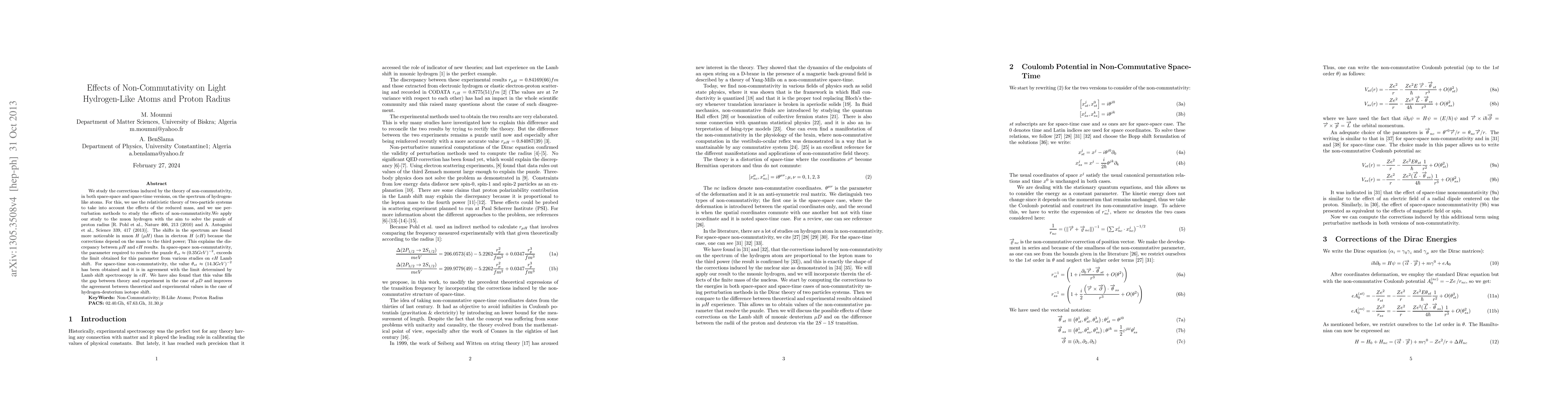 This paper explores the impact of non-commutativity on the spectral shifts in hydrogen-like atoms, particularly muon hydrogen, using relativistic two-particle theory and perturbation methods. It resolves the proton radius puzzle by showing that non-commutativity effects are more significant in muon hydrogen due to mass dependency, and finds that space-time non-commutativity parameters align with experimental limits from electron hydrogen Lamb shift.