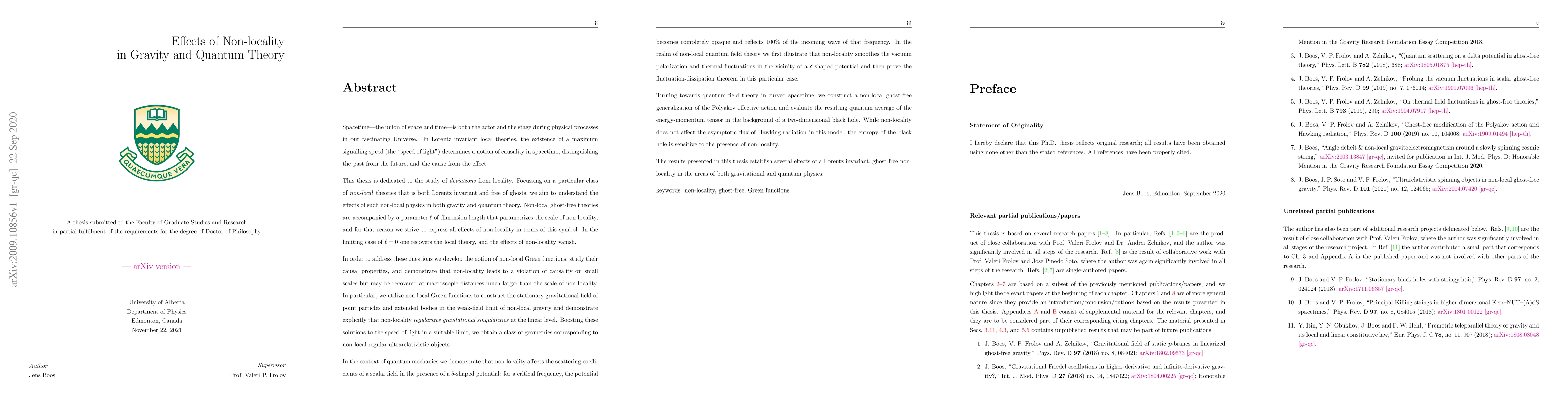 Spacetime---the union of space and time---is both the actor and the stage during physical processes in our fascinating Universe. In Lorentz invariant local theories, the existence of a maximum signalling speed (the "speed of light") determines a notion of causality in spacetime, distinguishing the past from the future, and the cause from the effect. This thesis is dedicated to the study of \emph{deviations} from locality. Focussing on a particular class of \emph{non-local} theories that is both Lorentz invariant and free of ghosts, we aim to understand the effects of such non-local physics in both gravity and quantum theory. Non-local ghost-free theories are accompanied by a parameter $\ell$ of dimension length that parametrizes the scale of non-locality, and for that reason we strive to express all effects of non-locality in terms of this symbol. In the limiting case of $\ell=0$ one recovers the local theory, and the effects of non-locality vanish. In order to address these questions we develop the notion of non-local Green functions [...]. The results presented in this thesis establish several effects of a Lorentz invariant, ghost-free non-locality in the areas of both gravitational and quantum physics. (Full abstract in document.)