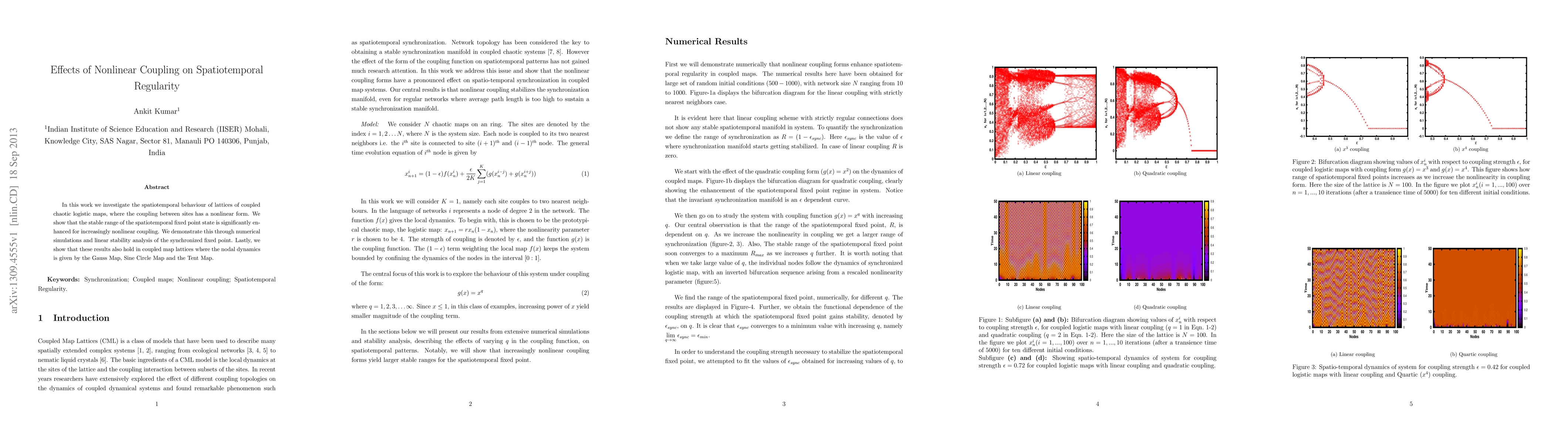 This research paper investigates how non-linear coupling affects the regularity of patterns in chaotic systems, showing that stronger non-linearity leads to more stable patterns.