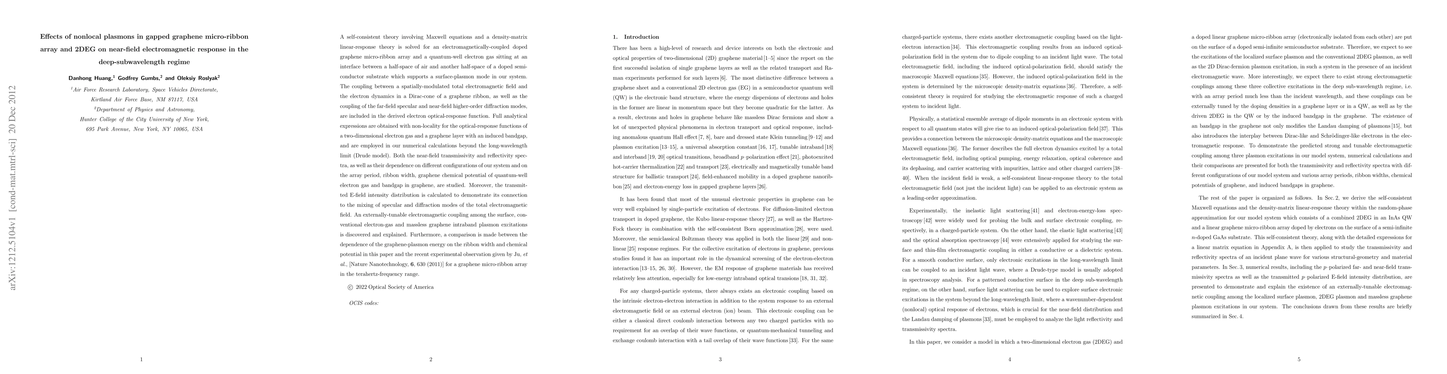 This paper investigates the near-field electromagnetic response of a doped graphene micro-ribbon array and a quantum-well electron gas, employing nonlocal plasmon dynamics. Analytical expressions for optical-response functions are derived and used to study electromagnetic coupling, transmissivity, and reflectivity spectra, revealing tunable electromagnetic interactions among various excitations.