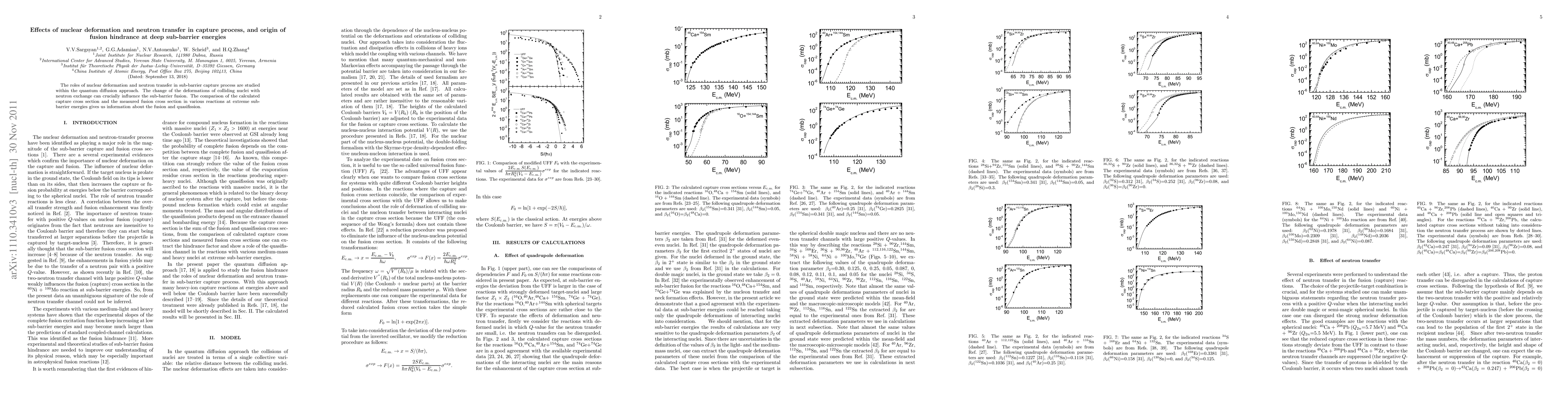 The roles of nuclear deformation and neutron transfer in sub-barrier capture process are studied within the quantum diffusion approach. The change of the deformations of colliding nuclei with neutron exchange can crucially influence the sub-barrier fusion. The comparison of the calculated capture cross section and the measured fusion cross section in various reactions at extreme sub- barrier energies gives us information about the fusion and quasifission.