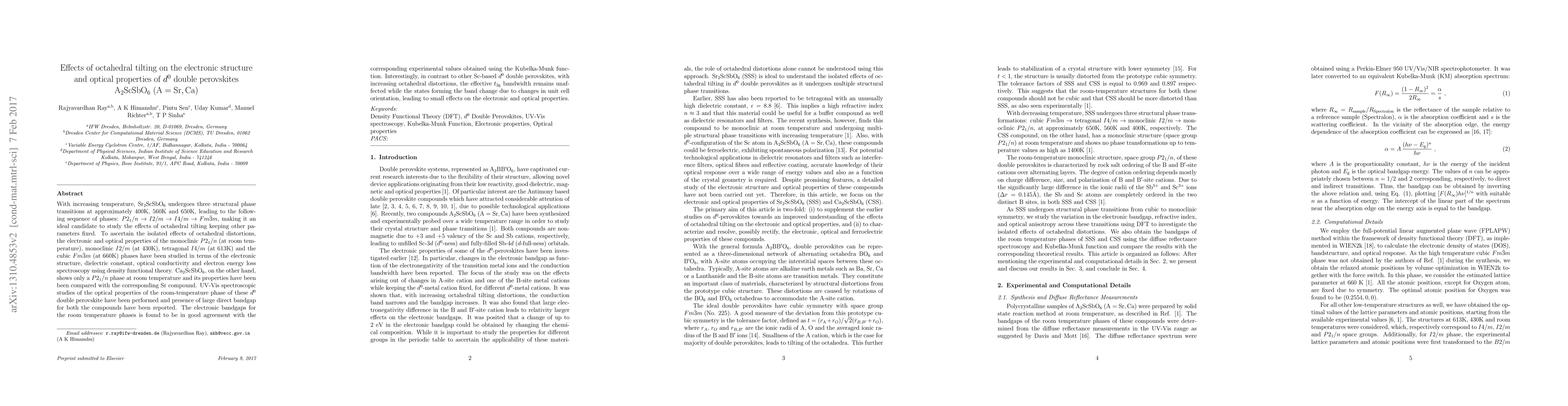 With increasing temperature, ${\rm Sr}_2{\rm ScSbO}_6$ undergoes three structural phase transitions at approximately ${\rm 400K}$, ${\rm 560K}$ and ${\rm 650K}$, leading to the following sequence of phases: $P2_1/n \rightarrow I2/m \rightarrow I4/m \rightarrow Fm\bar{3}m$, making it an ideal candidate to study the effects of octahedral tilting keeping other parameters fixed. To ascertain the isolated effects of octahedral distortions, the electronic and optical properties of the monoclinic $P2_1/n$ (at room temperature), monoclinic $I2/m$ (at ${\rm 430K}$), tetragonal $I4/m$ (at ${\rm 613K}$) and the cubic $Fm\bar{3}m$ (at ${\rm 660K}$) phases have been studied in terms of the electronic structure, dielectric constant, optical conductivity and electron energy loss spectroscopy using density functional theory. ${\rm Ca}_2{\rm ScSbO}_6$, on the other hand, shows only a $P2_1/n$ phase at room temperature and its properties have been been compared with the corresponding ${\rm Sr}$ compound. UV-Vis spectroscopic studies of the optical properties of the room-temperature phase of these $d^0$ double perovskite have been performed and presence of large direct bandgap for both the compounds have been reported. The electronic bandgaps for the room temperature phases is found to be in good agreement with the corresponding experimental values obtained using the Kubelka-Munk function. Interestingly, in contrast to other Sc-based $d^0$ double perovskites, with increasing octahedral distortions, the effective $t_{\rm 2g}$ bandwidth remains unaffected while the states forming the band change due to changes in unit cell orientation, leading to small effects on the electronic and optical properties.