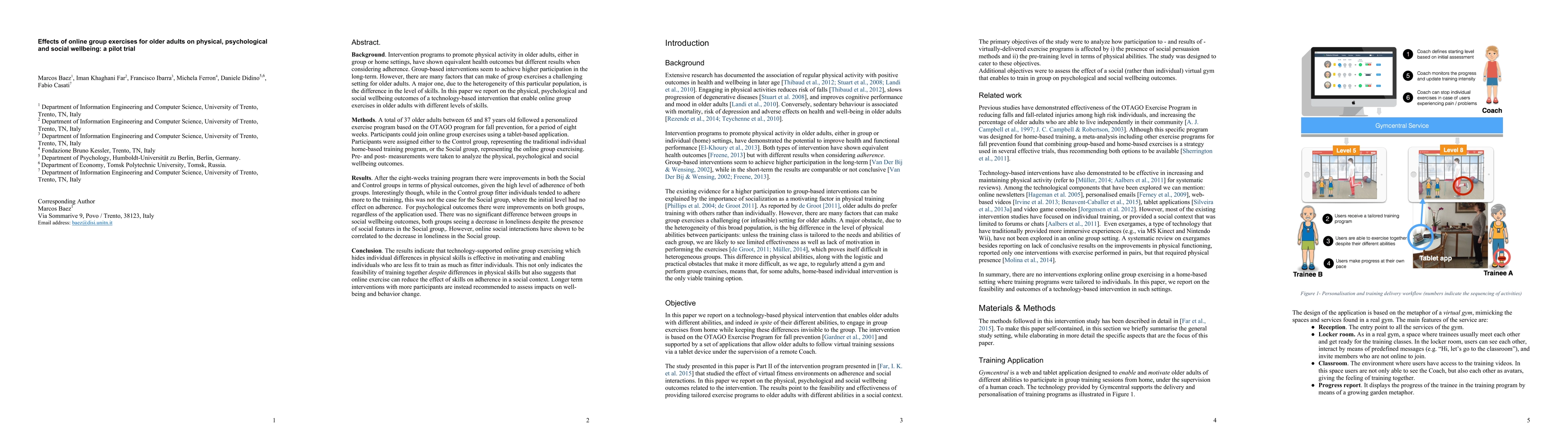 This pilot trial found that online group exercises in a virtual gym improved physical, psychological, and social wellbeing in older adults, regardless of initial fitness levels. The study suggests that virtual group settings can enhance adherence irrespective of skill differences, though longer-term studies with larger samples are needed to fully assess wellbeing impacts.