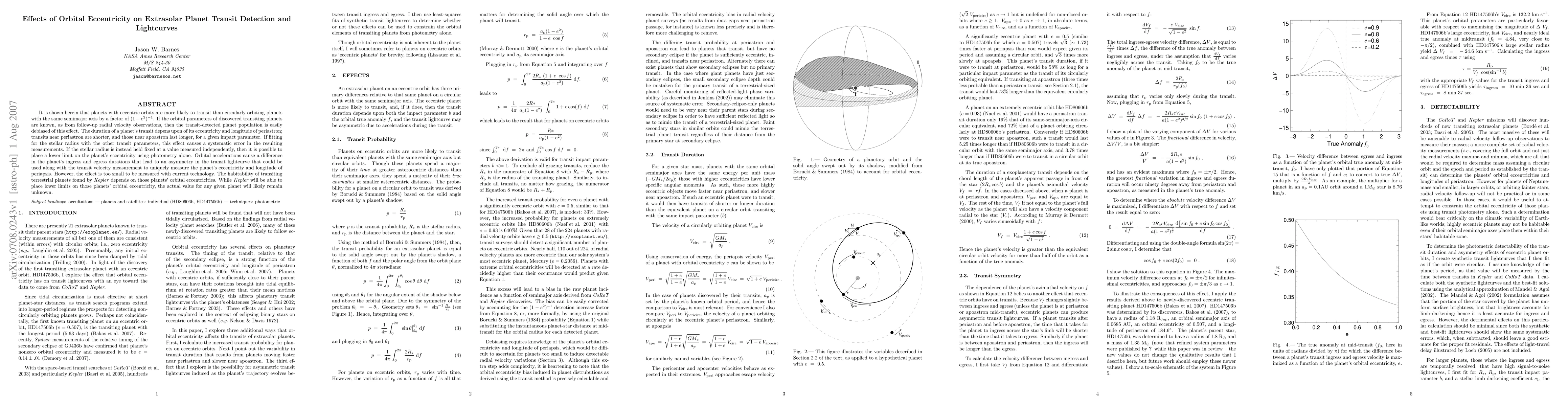 This paper demonstrates that extrasolar planets with eccentric orbits are more likely to transit than those with circular orbits, affecting transit detection and lightcurve analysis. It highlights the potential for systematic errors in stellar radius measurements and suggests that while current technology cannot measure eccentricity asymmetries, future improvements could provide insights into the habitability of transiting terrestrial planets.
