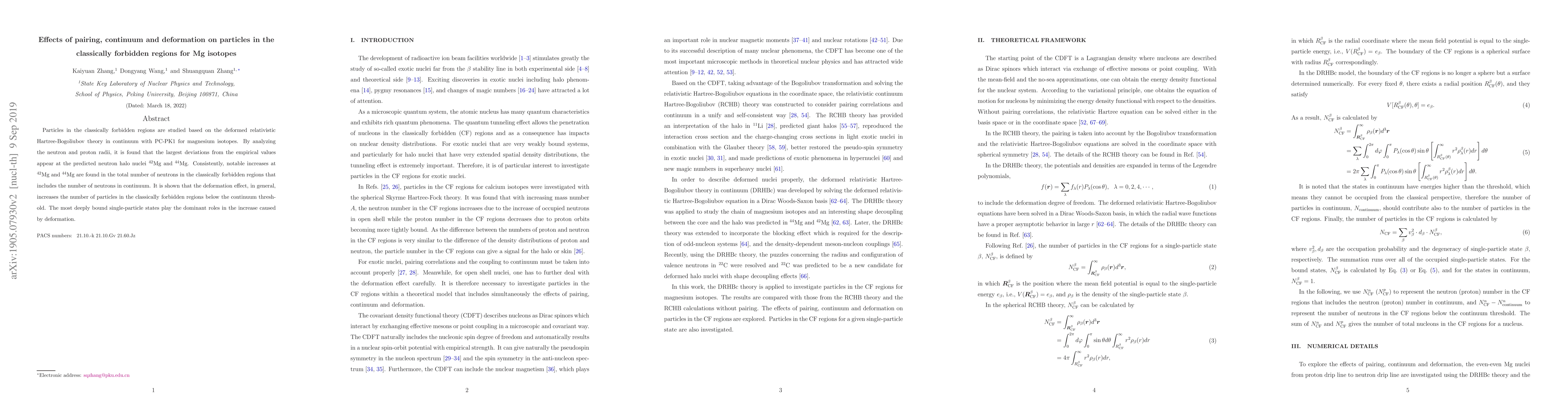 This paper investigates the effects of pairing, continuum, and deformation on particles in the classically forbidden regions for magnesium isotopes using the deformed relativistic Hartree-Bogoliubov theory. The study finds significant deviations in neutron halo nuclei $^{42}$Mg and $^{44}$Mg, with notable increases in the number of neutrons in the forbidden regions, highlighting the role of deformation in increasing particle presence in these regions.