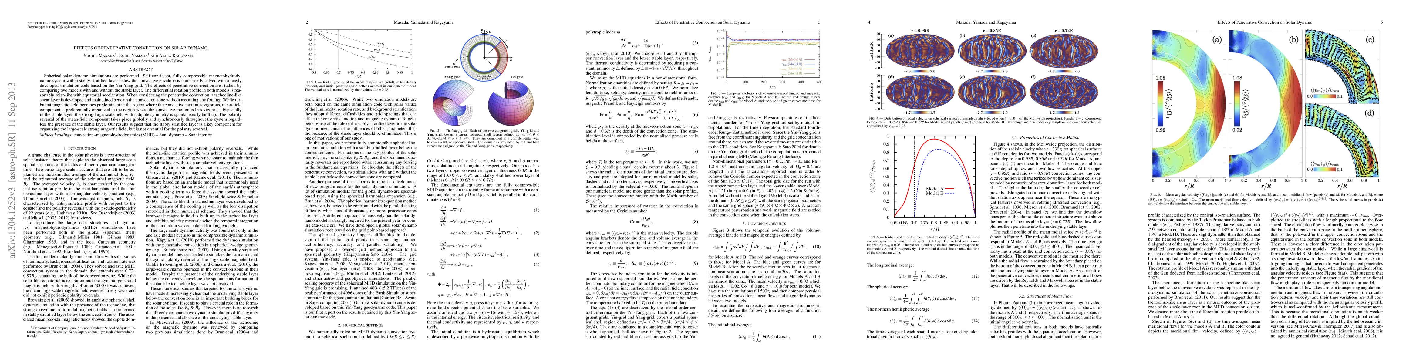 This study investigates the impact of penetrative convection on solar dynamo processes using advanced spherical simulations. Results show that a tachocline-like shear layer forms naturally beneath the convection zone, and a strong large-scale magnetic field with dipole symmetry develops in the stably stratified layer, indicating its crucial role in magnetic field organization.