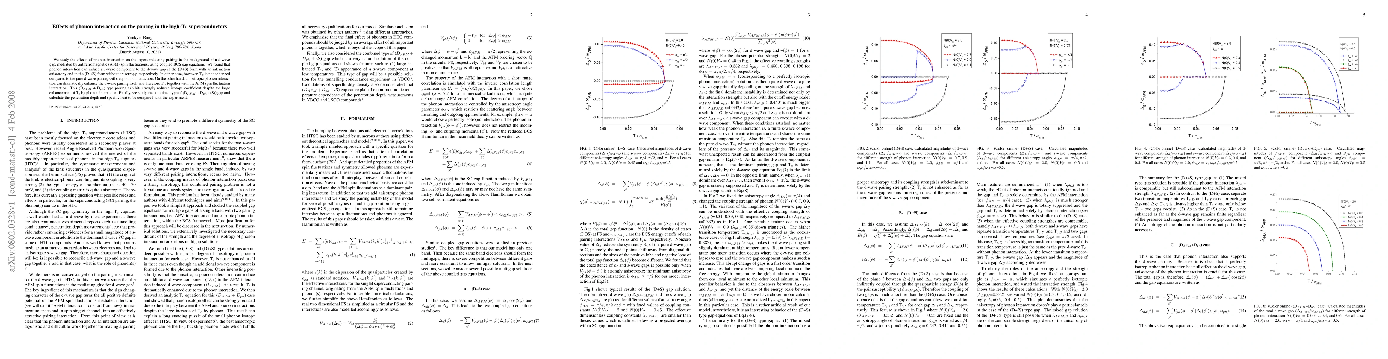 This paper investigates how phonon interaction influences superconducting pairing in high-T$_c$ superconductors, finding that it can induce s-wave components to d-wave gaps but does not enhance T$_c$ alone. However, anisotropic phonon interaction significantly boosts d-wave pairing and T$_c$, leading to reduced isotope effect. The study also examines the combined pairing effect and compares calculated penetration depth and specific heat with experimental data.