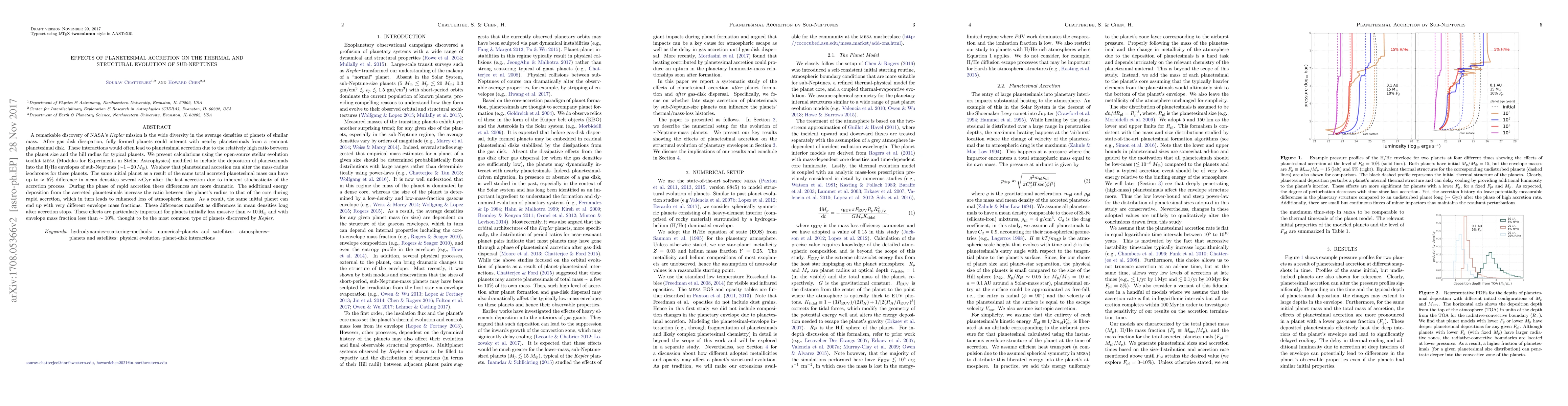 A remarkable discovery of NASA's Kepler mission is the wide diversity in the average densities of planets of similar mass. After gas disk dissipation, fully formed planets could interact with nearby planetesimals from a remnant planetesimal disk. These interactions would often lead to planetesimal accretion due to the relatively high ratio between the planet size and the hill radius for typical planets. We present calculations using the open-source stellar evolution toolkit MESA (Modules for Experiments in Stellar Astrophysics) modified to include the deposition of planetesimals into the H/He envelopes of sub-Neptunes (~1-20 MEarth). We show that planetesimal accretion can alter the mass-radius isochrones for these planets. The same initial planet as a result of the same total accreted planetesimal mass can have up to ~5% difference in mean densities several Gyr after the last accretion due to inherent stochasticity of the accretion process. During the phase of rapid accretion these differences are more dramatic. The additional energy deposition from the accreted planetesimals increase the ratio between the planet's radius to that of the core during rapid accretion, which in turn leads to enhanced loss of atmospheric mass. As a result, the same initial planet can end up with very different envelope mass fractions. These differences manifest as differences in mean densities long after accretion stops. These effects are particularly important for planets initially less massive than ~10 MEarth and with envelope mass fraction less than ~10%, thought to be the most common type of planets discovered by Kepler.