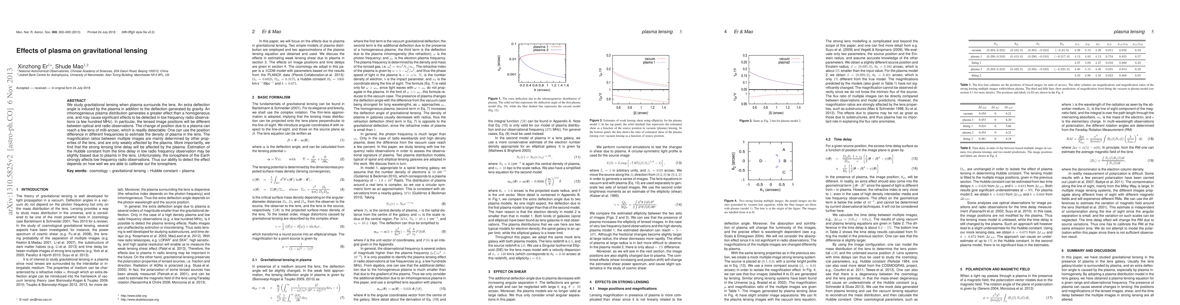 This paper investigates how plasma surrounding a gravitational lens induces an additional deflection angle, affecting lensing effects and potentially causing detectable shifts in lensed image positions, especially in low-frequency radio observations. The study highlights that inhomogeneous plasma can significantly alter these positions, impacting the estimation of plasma density and potentially introducing biases in the Hubble constant calculation.