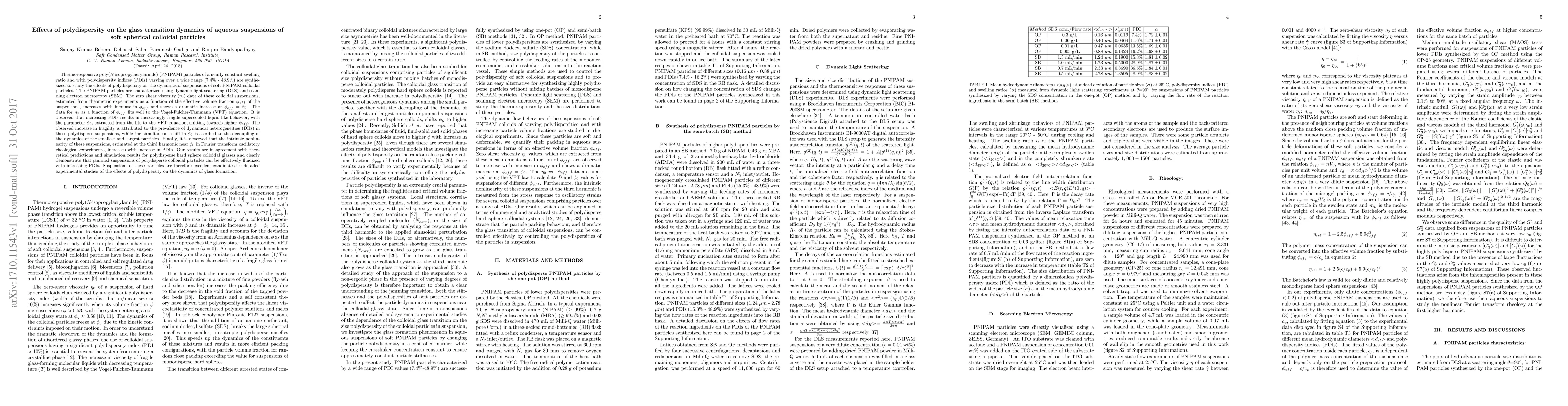 Thermoresponsive poly(N-isopropylacrylamide) (PNIPAM) particles of a nearly constant swelling ratio and with polydispersity indices (PDIs) varying over a wide range (7.4% - 48.9%) are synthesized to study the effects of polydispersity on the dynamics of suspensions of soft PNIPAM colloidal particles. The PNIPAM particles are characterized using dynamic light scattering (DLS) and scanning electron microscopy (SEM). The zero shear viscosity ($\eta_{0}$) data of these colloidal suspensions, estimated from rheometric experiments as a function of the effective volume fraction $\phi_{eff}$ of the suspensions, increases with increase in $\phi_{eff}$ and shows a dramatic increase at $\phi_{eff}=\phi_{0}$. The data for $\eta_{0}$ as a function of $\phi_{eff}$ fits well to the Vogel-Fulcher-Tammann (VFT) equation. It is observed that increasing PDIs results in increasingly fragile supercooled liquid-like behavior, with the parameter $\phi_{0}$, extracted from the fits to the VFT equation, shifting towards higher $\phi_{eff}$. The observed increase in fragility is attributed to the prevalence of dynamical heterogeneities (DHs) in these polydisperse suspensions, while the simultaneous shift in $\phi_{0}$ is ascribed to the decoupling of the dynamics of the smallest and largest particles. Finally, it is observed that the intrinsic nonlinearity of these suspensions, estimated at the third harmonic near $\phi_{0}$ in Fourier transform oscillatory rheological experiments, increases with increase in PDIs. Our results are in agreement with theoretical predictions and simulation results for polydisperse hard sphere colloidal glasses and clearly demonstrate that jammed suspensions of polydisperse colloidal particles can be effectively fluidized with increasing PDIs.