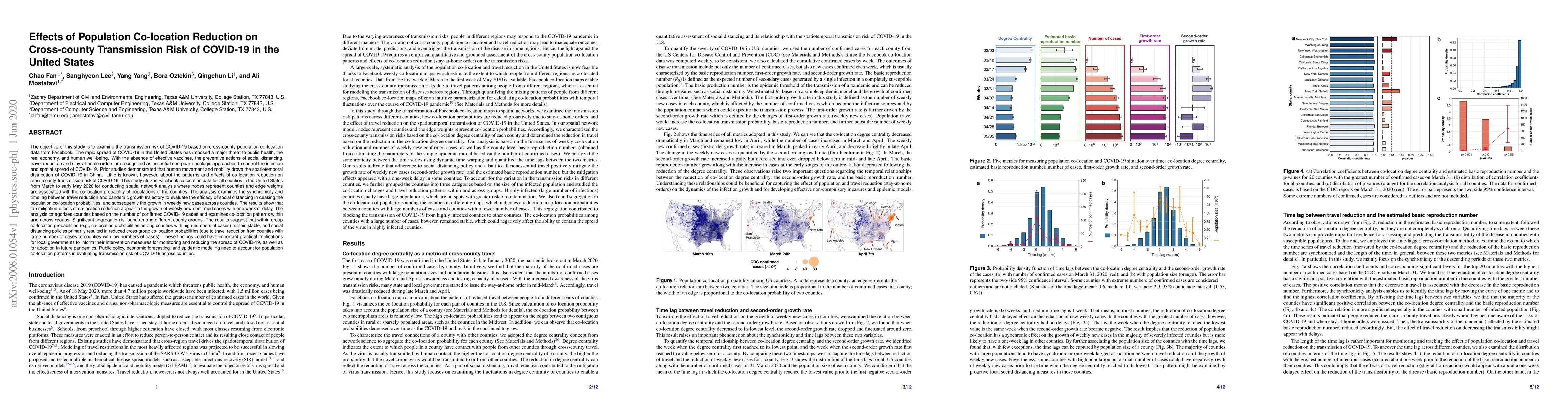 This study analyzes the impact of population co-location reduction on cross-county COVID-19 transmission in the U.S. using Facebook co-location data, finding that social distancing measures effectively reduce cross-group travel and new case growth with a one-week delay.