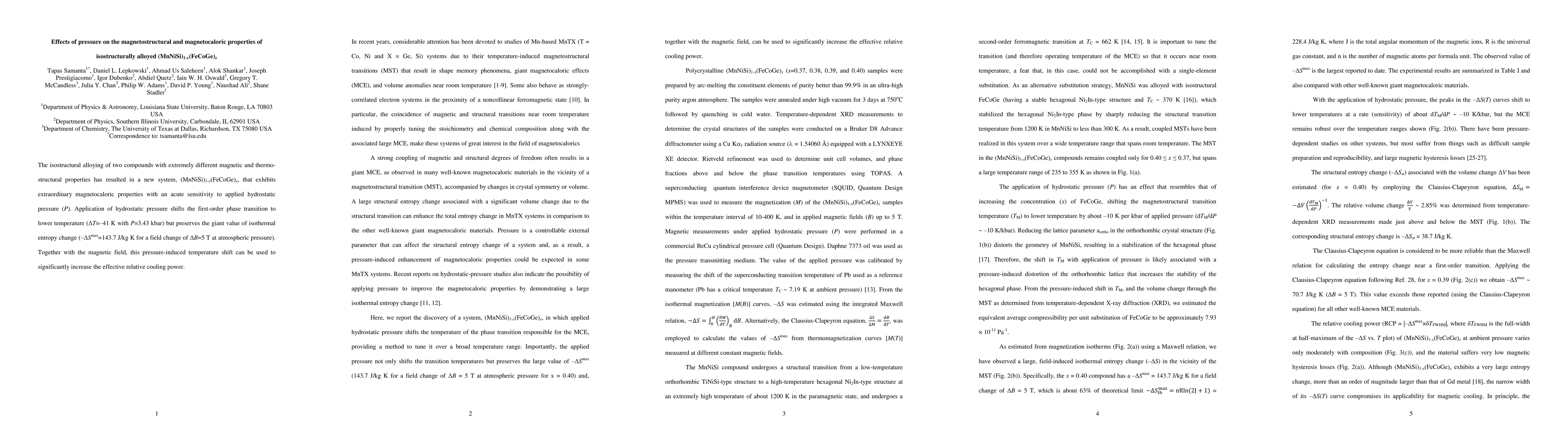 Researchers discovered a new material alloy that exhibits enhanced magnetocaloric properties when subjected to hydrostatic pressure, allowing for increased cooling power when combined with magnetic fields.