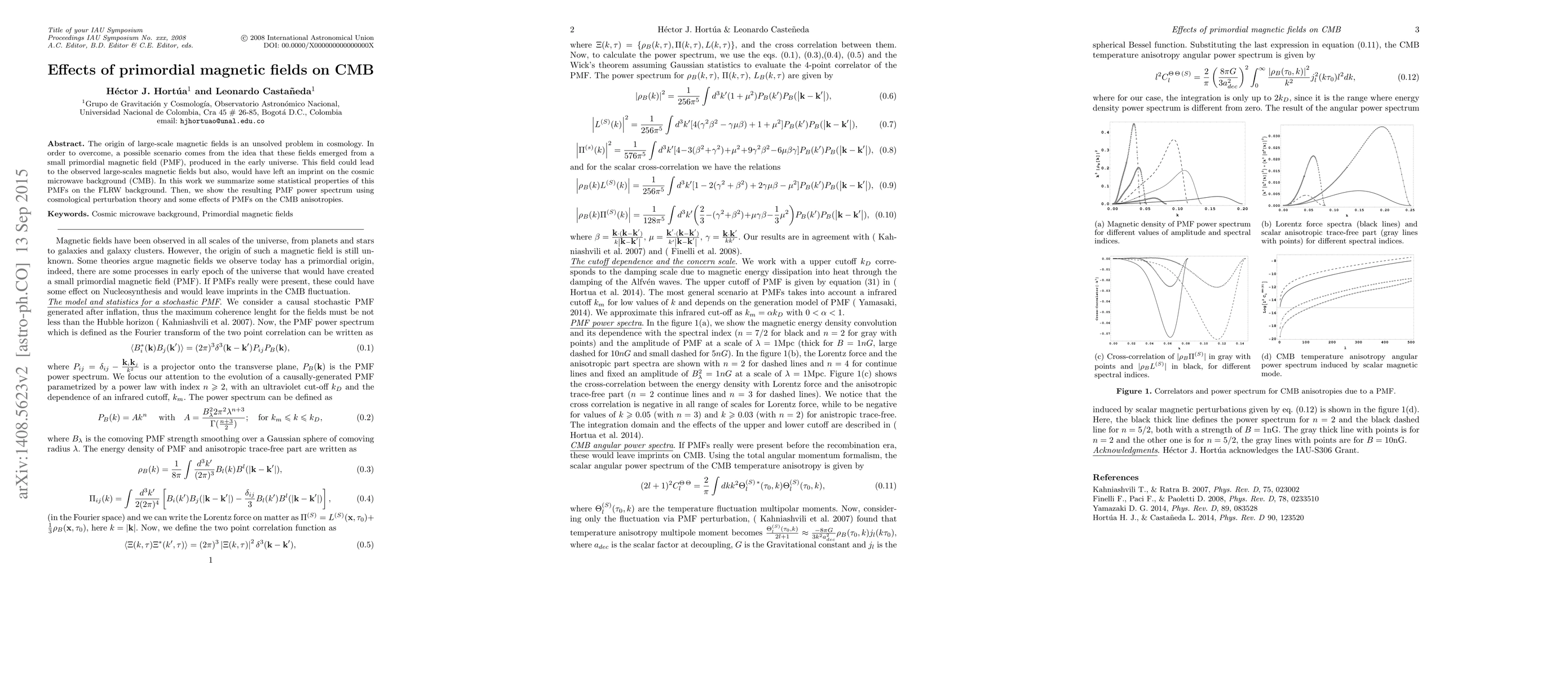 The origin of large-scale magnetic fields is an unsolved problem in cosmology. In order to overcome, a possible scenario comes from the idea that these fields emerged from a small primordial magnetic field (PMF), produced in the early universe. This field could lead to the observed large-scales magnetic fields but also, would have left an imprint on the cosmic microwave background (CMB). In this work we summarize some statistical properties of this PMFs on the FLRW background. Then, we show the resulting PMF power spectrum using cosmological perturbation theory and some effects of PMFs on the CMB anisotropies.