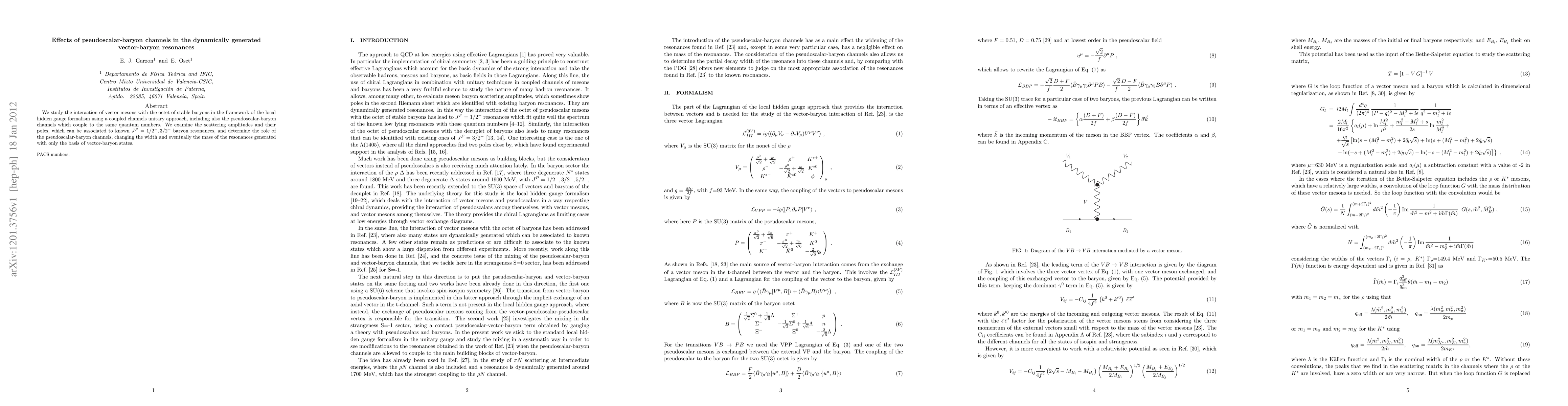 This research investigates the dynamics of vector meson interactions with stable baryons using a coupled channels unitary approach, focusing on the influence of pseudoscalar-baryon channels on the generation and properties of vector-baryon resonances. The study reveals how these pseudoscalar channels modify the width and mass of the resonances traditionally derived from vector-baryon interactions alone.