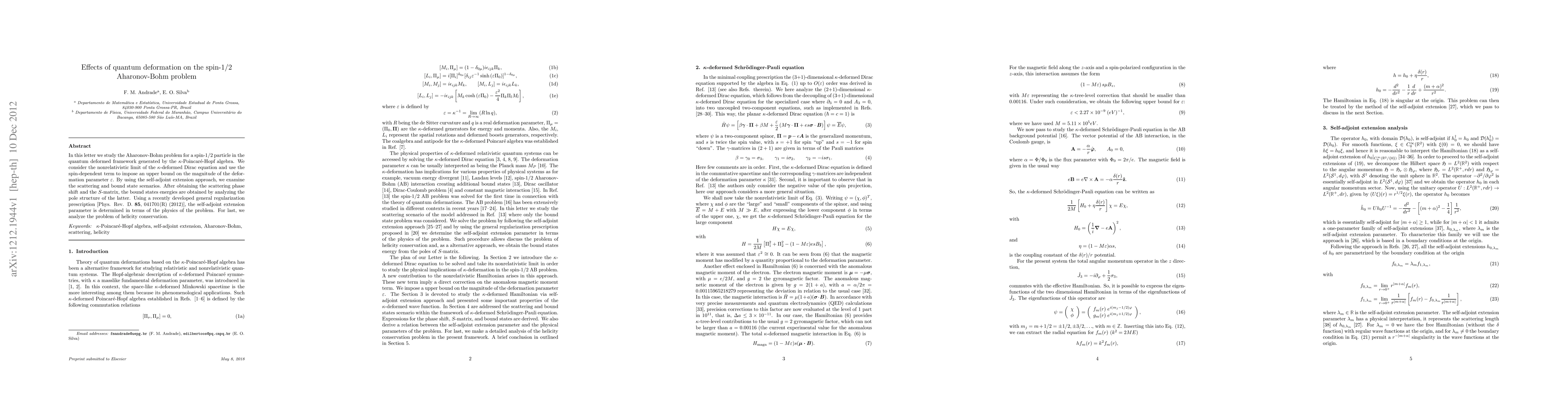 This paper investigates the Aharonov-Bohm effect for spin-1/2 particles within the quantum deformed framework of the $\kappa$-Poincaré-Hopf algebra, determining an upper bound for the deformation parameter $\varepsilon$ and analyzing scattering and bound states using self-adjoint extensions.