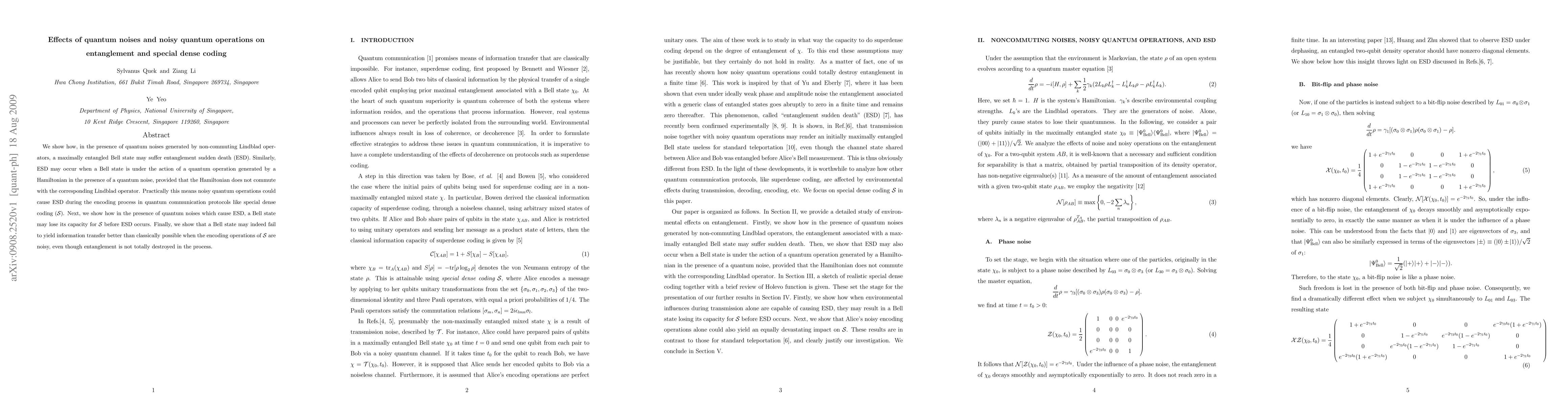Research shows that quantum noises can cause entanglement to 'suddenly die' during encoding processes in quantum communication protocols like special dense coding, potentially leading to information transfer limitations.