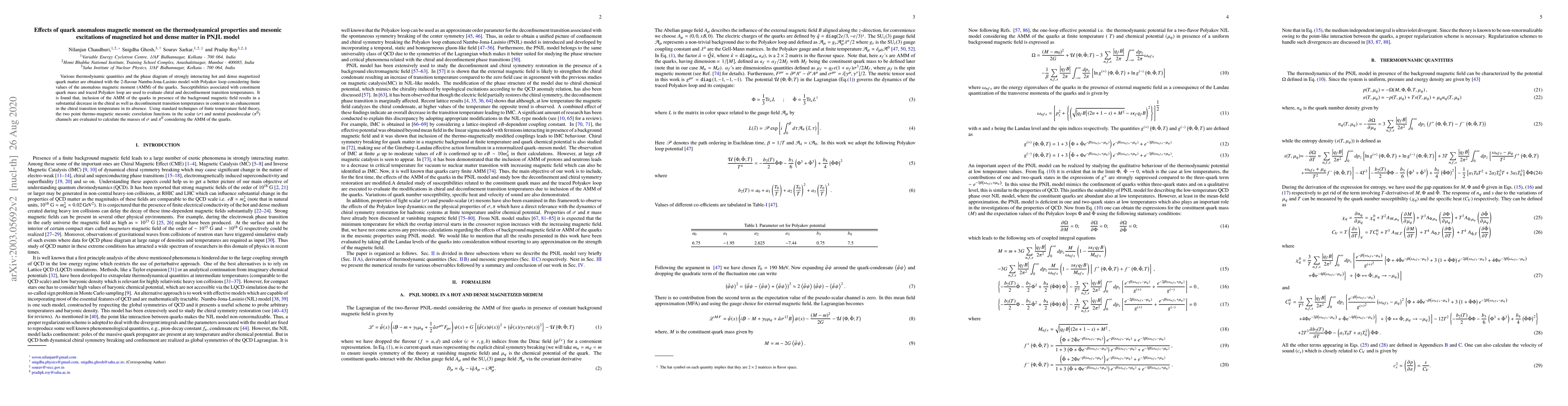 Various thermodynamic quantities and the phase diagram of strongly interacting hot and dense magnetized quark matter are obtained with the $ 2 $-flavour Nambu-Jona-Lasinio model with Polyakov loop considering finite values of the anomalous magnetic moment (AMM) of the quarks. Susceptibilities associated with constituent quark mass and traced Polyakov loop are used to evaluate chiral and deconfinement transition temperatures. It is found that, inclusion of the AMM of the quarks in presence of the background magnetic field results in a substantial decrease in the chiral as well as deconfinement transition temperatures in contrast to an enhancement in the chiral transition temperature in its absence. Using standard techniques of finite temperature field theory, the two point thermo-magnetic mesonic correlation functions in the scalar ($\sigma$) and neutral pseudoscalar ($\pi^0$) channels are evaluated to calculate the masses of $\sigma $ and $ \pi^0 $ considering the AMM of the quarks.