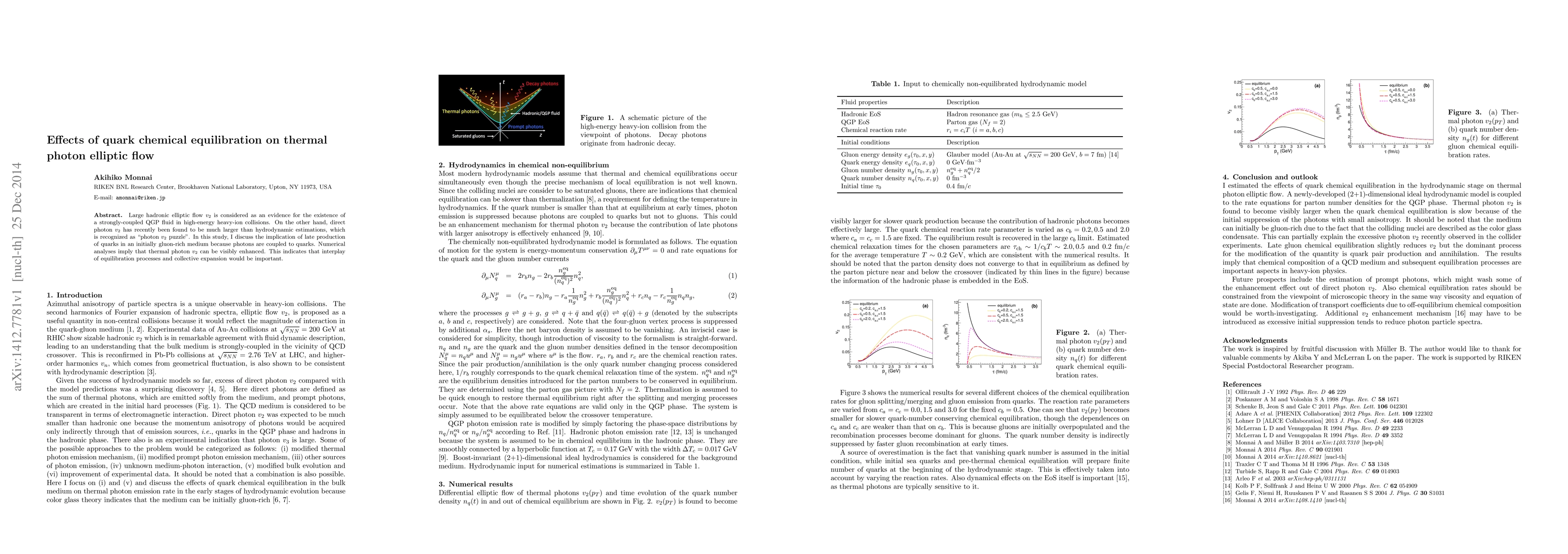 Large hadronic elliptic flow $v_2$ is considered as an evidence for the existence of a strongly-coupled QGP fluid in high-energy heavy-ion collisions. On the other hand, direct photon $v_2$ has recently been found to be much larger than hydrodynamic estimations, which is recognized as "photon $v_2$ puzzle". In this study, I discuss the implication of late production of quarks in an initially gluon-rich medium because photons are coupled to quarks. Numerical analyses imply that thermal photon $v_2$ can be visibly enhanced. This indicates that interplay of equilibration processes and collective expansion would be important.