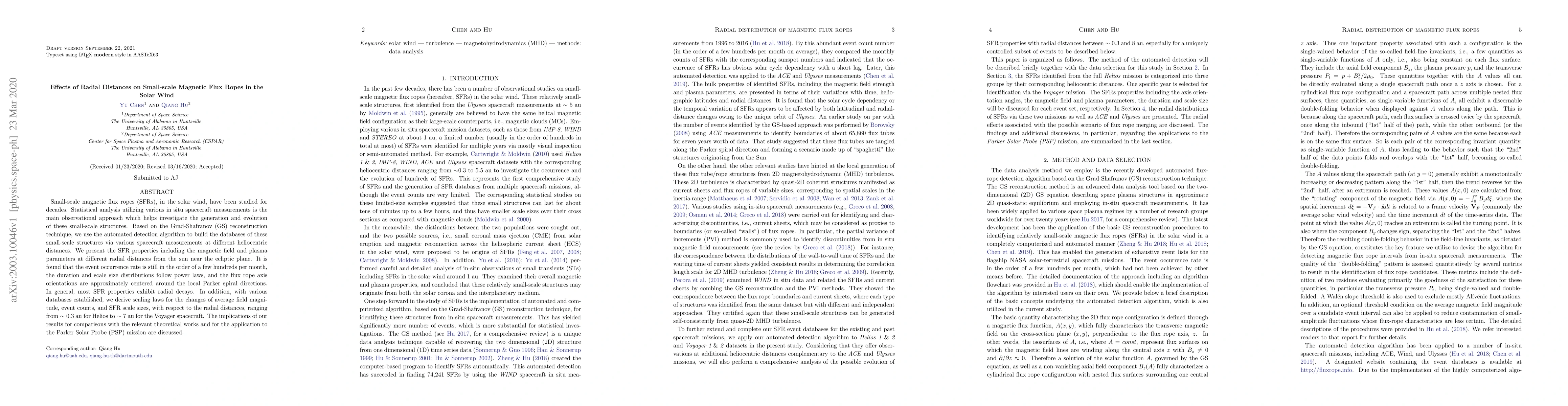 This study investigates small-scale magnetic flux ropes in the solar wind using spacecraft measurements and Grad-Shafranov reconstruction. It finds that SFR properties, including magnetic field and plasma parameters, generally decay with increasing radial distance from the sun, and proposes scaling laws for these properties across different heliocentric distances.