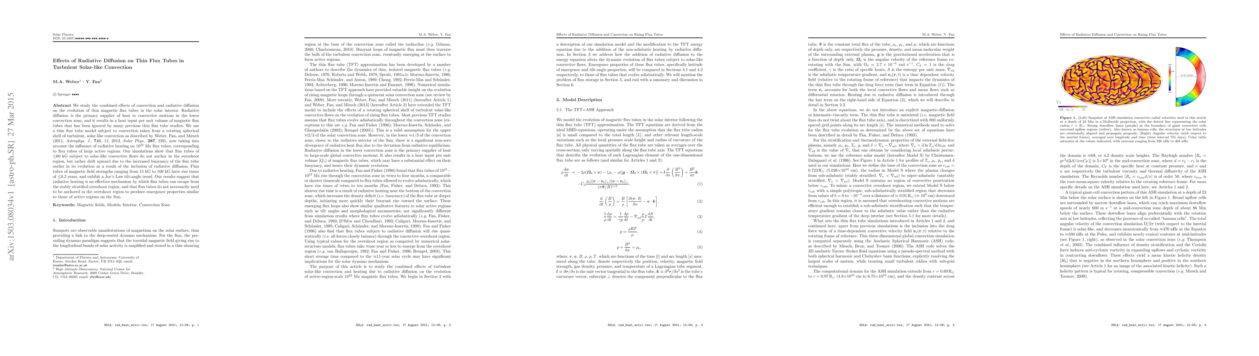 This paper investigates the impact of radiative diffusion on the evolution of thin magnetic flux tubes in turbulent solar-like convection, showing that radiative heating allows flux tubes to drift upward and escape the overshoot region, leading to emergence properties similar to solar active regions.