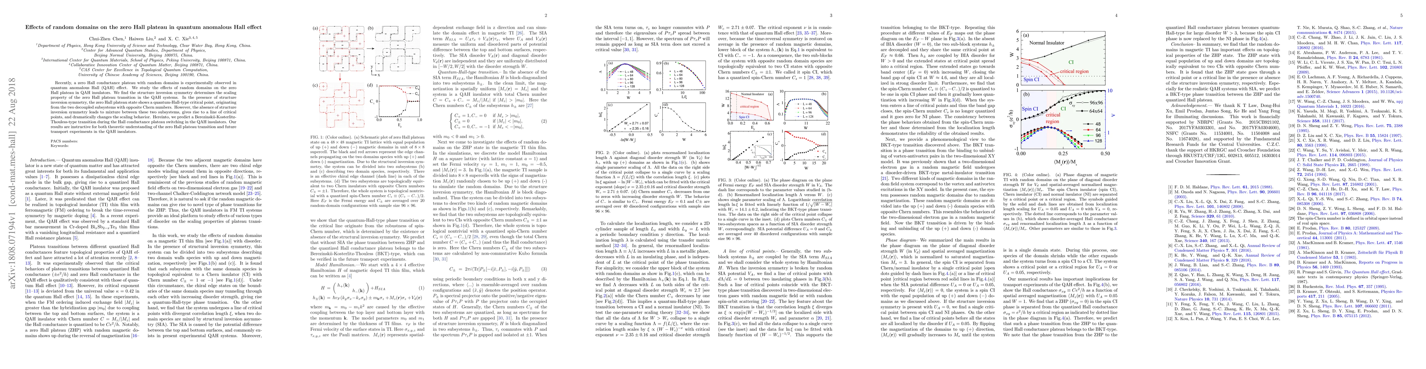 This paper investigates the impact of random domains on the zero Hall conductance plateau in quantum anomalous Hall effect systems, finding that the presence or absence of structure inversion symmetry fundamentally alters the scaling behavior and critical transition characteristics, predicting a Berezinskii-Kosterlitz-Thouless-type transition during plateau switching.