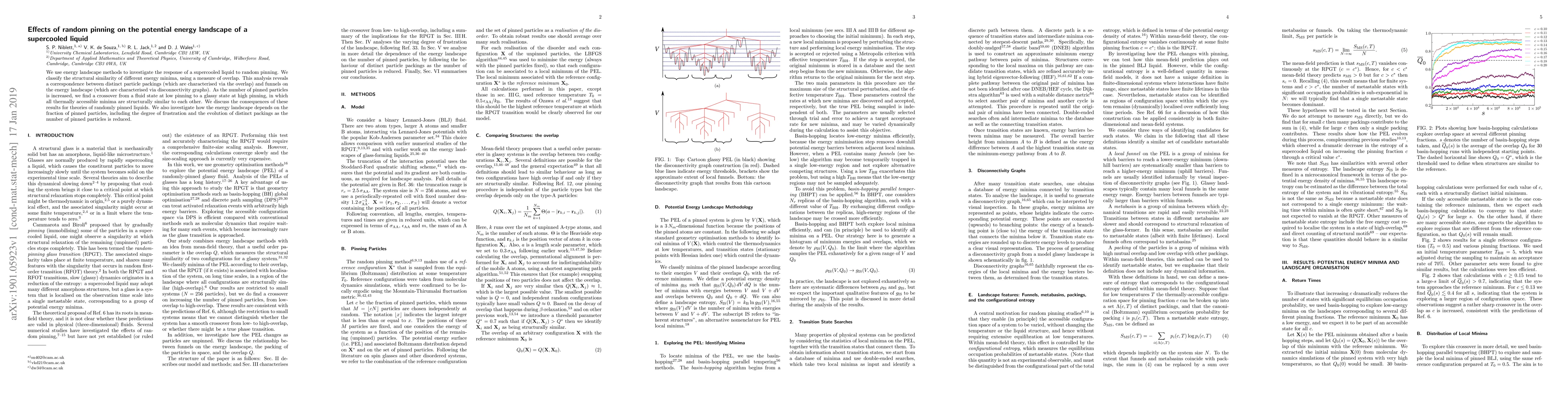 This study uses energy landscape methods to explore how random pinning affects the potential energy landscape of a supercooled liquid, revealing a transition from glassy behavior to a structure-seeking landscape as pinned particles increase. The analysis connects particle packing similarity to energy landscape features, highlighting implications for theories of pinned liquids.