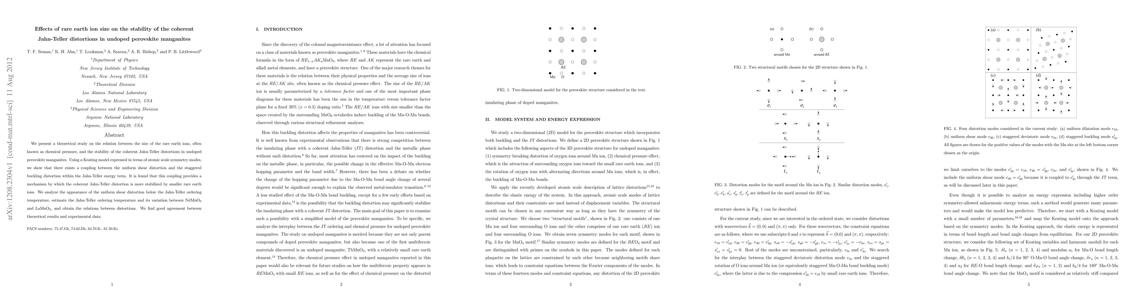 This study theoretically investigates how the size of rare earth ions influences the stability of coherent Jahn-Teller distortions in undoped perovskite manganites, demonstrating that smaller ions enhance this stability through a coupling mechanism between distortions, with good alignment between model predictions and experimental observations.