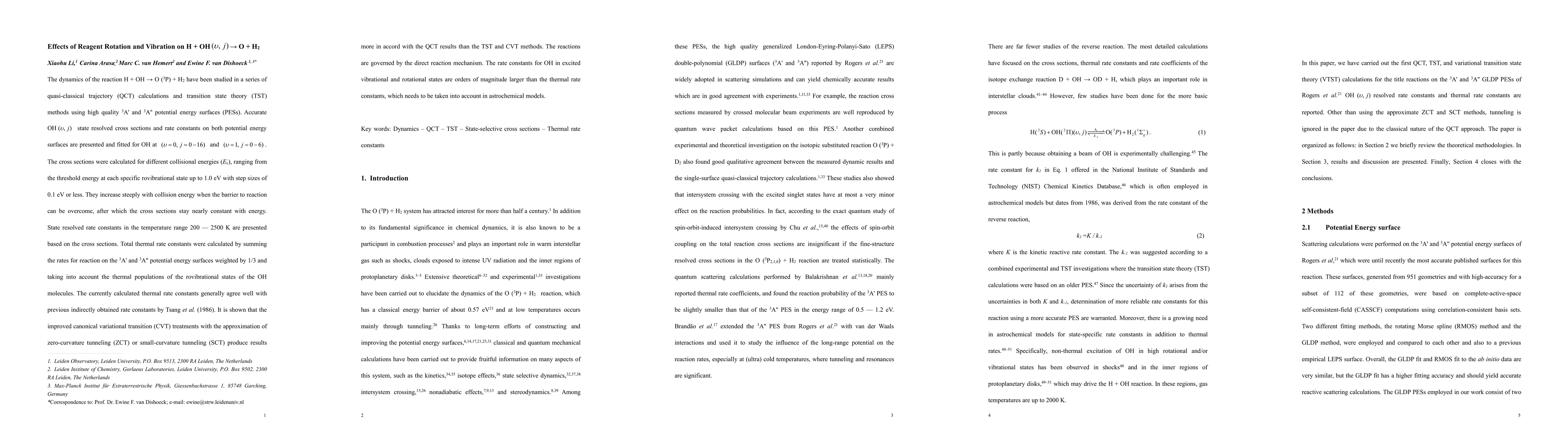 This study uses two methods to analyze a chemical reaction involving hydrogen and hydroxyl radicals, finding that the reaction rates increase with collision energy before leveling off, and that excited states of reactants have much higher reaction rates than thermal rates.