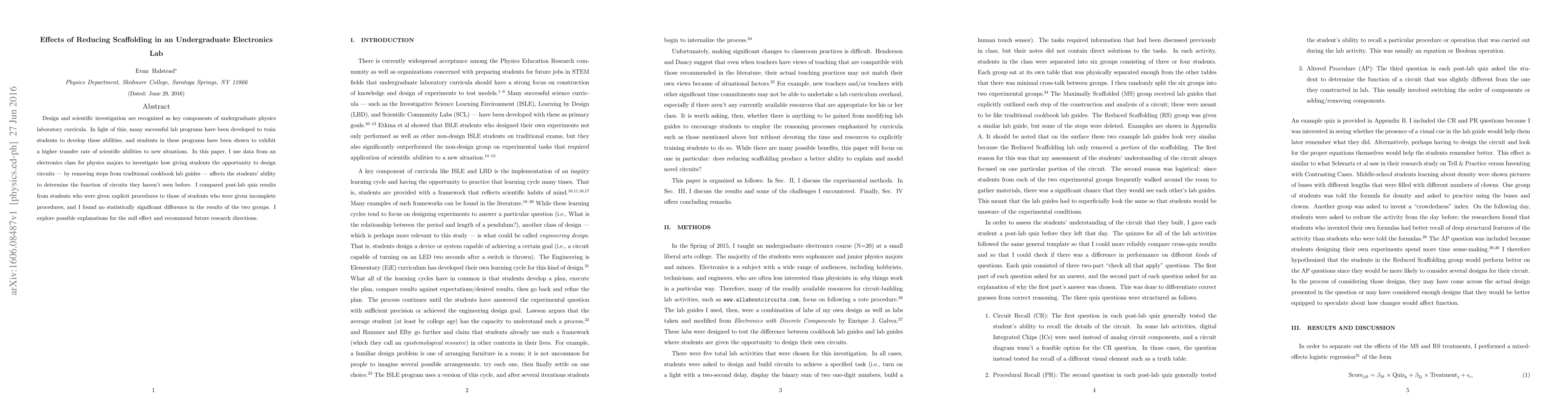 This paper investigates the impact of reducing traditional lab guide steps on students' ability to design circuits and determine functions of unfamiliar circuits in an undergraduate electronics lab. Results show no significant difference in performance between students with complete vs. incomplete lab guides, prompting further exploration and recommendations for future research.