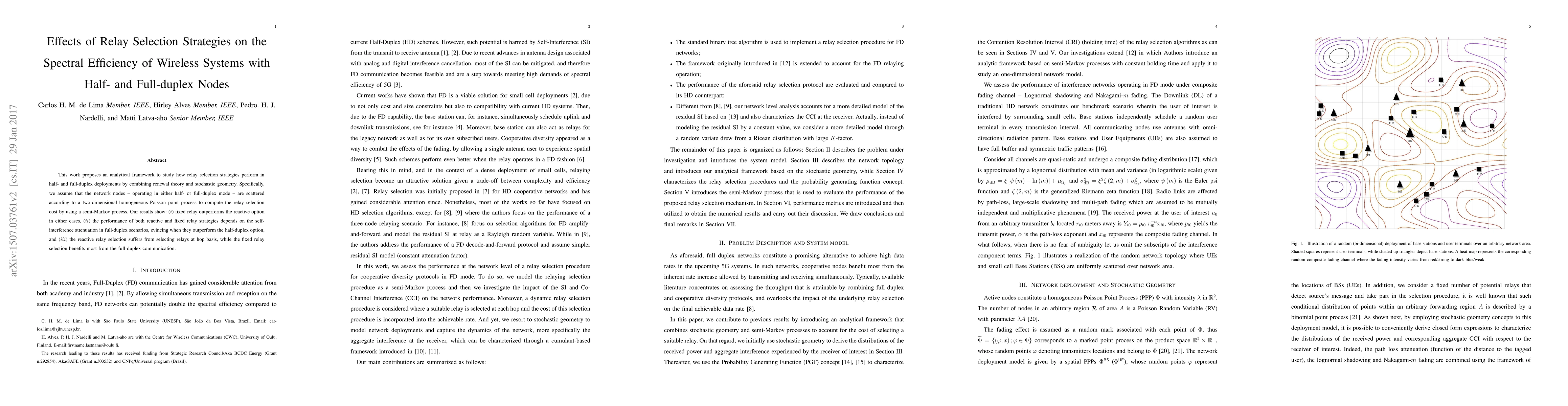 This paper develops an analytical framework to evaluate relay selection strategies in wireless networks using half- and full-duplex nodes, revealing that fixed relays generally outperform reactive ones, with performance heavily influenced by self-interference attenuation in full-duplex scenarios.
