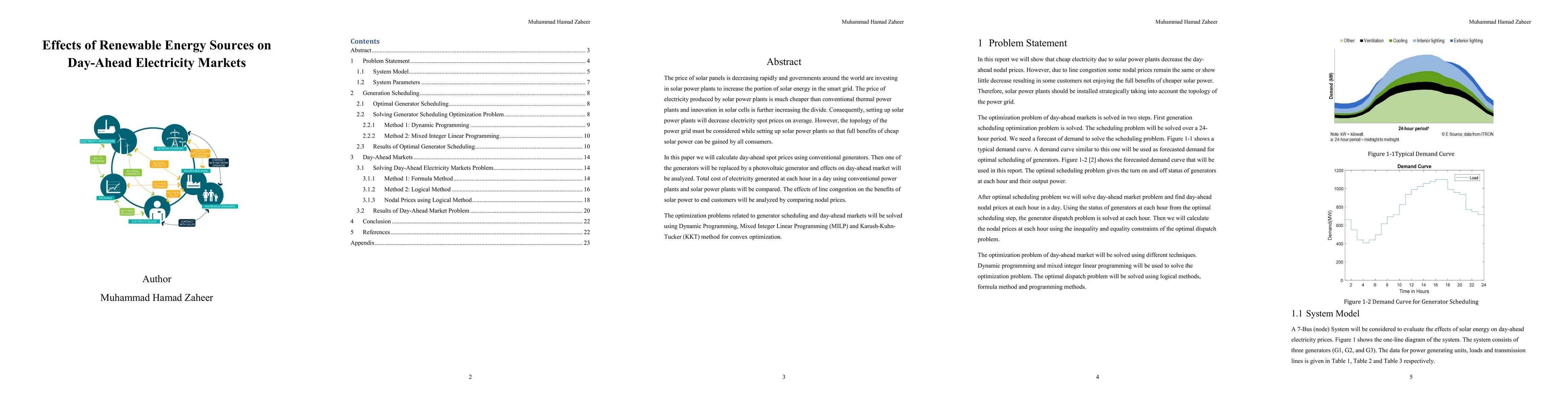 The price of solar panels is decreasing rapidly and governments around the world are investing in solar power plants to increase the portion of solar energy in the smart grid. The price of electricity produced by solar power plants is much cheaper than conventional thermal power plants and innovation in solar cells is further increasing the divide. Consequently, setting up solar power plants will decrease electricity spot prices on average. However, the topology of the power grid must be considered while setting up solar power plants so that full benefits of cheap solar power can be gained by all consumers. In this paper we will calculate day-ahead spot prices using conventional generators. Then one of the generators will be replaced by a photovoltaic generator and effects on day-ahead market will be analyzed. Total cost of electricity generated at each hour in a day using conventional power plants and solar power plants will be compared. The effects of line congestion on the benefits of solar power to end customers will be analyzed by comparing nodal prices. The optimization problems related to generator scheduling and day-ahead markets will be solved using Dynamic Programming, Mixed Integer Linear Programming (MILP) and Karush-Kuhn-Tucker (KKT) method for convex optimization.