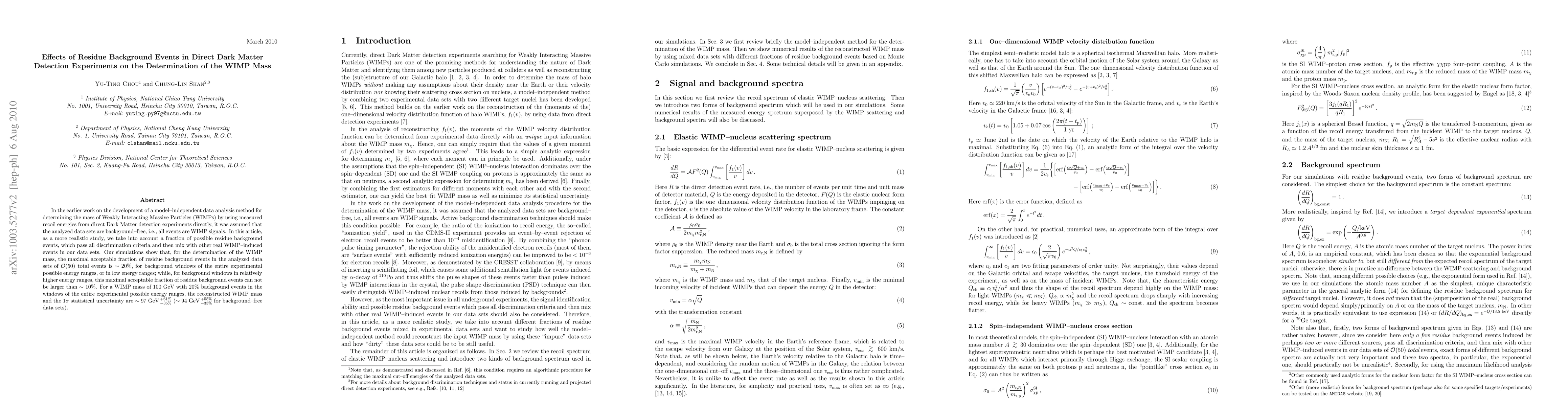 This paper examines the impact of residue background events on determining the WIMP mass in direct dark matter detection experiments. It finds that up to 20% of background events can be tolerated in low energy ranges, but only 10% in higher energy ranges, significantly affecting the reconstructed WIMP mass and its statistical uncertainty.