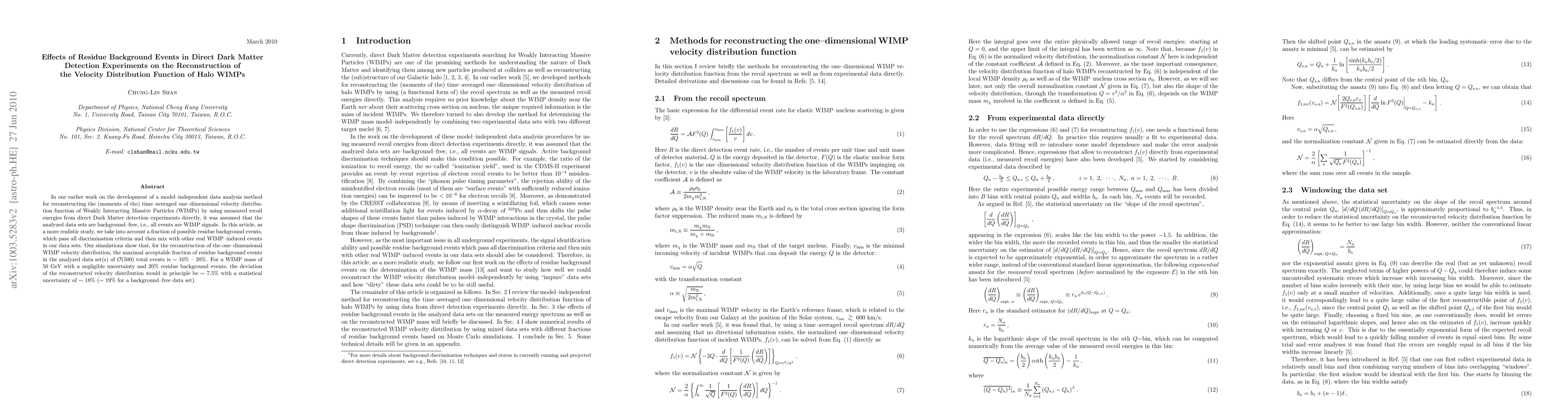 This paper examines the impact of residue background events on the reconstruction of the velocity distribution function of WIMPs in direct Dark Matter detection experiments. It finds that up to ~20% background events can still allow for a 7.5% deviation in the reconstructed velocity distribution, with a statistical uncertainty of ~18%.