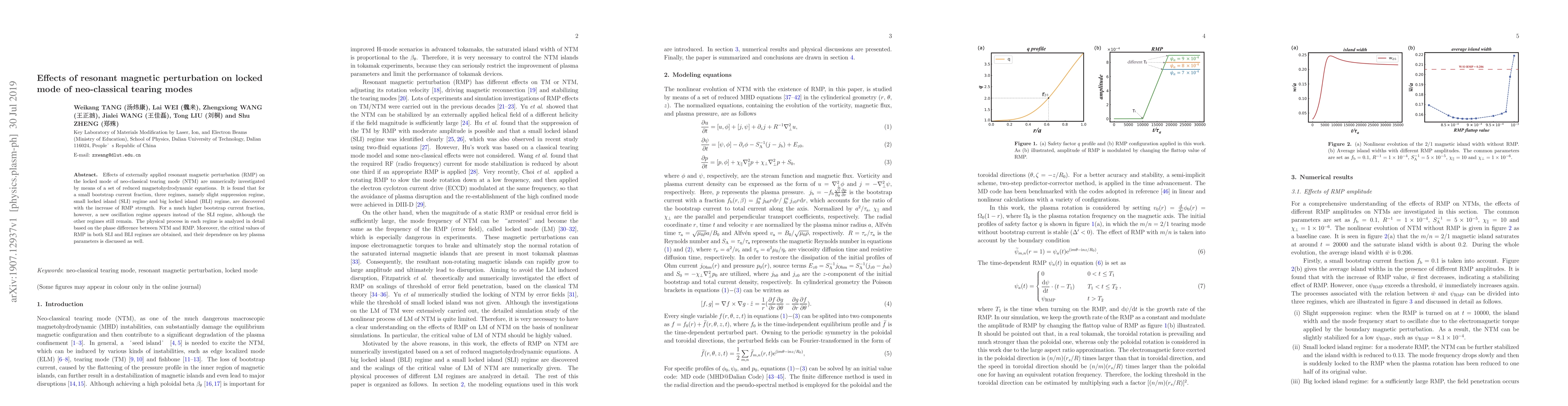 Researchers investigated how resonant magnetic perturbation affects a specific type of magnetic instability in plasma, finding three regimes with varying effects on the instability depending on the strength of the perturbation.
