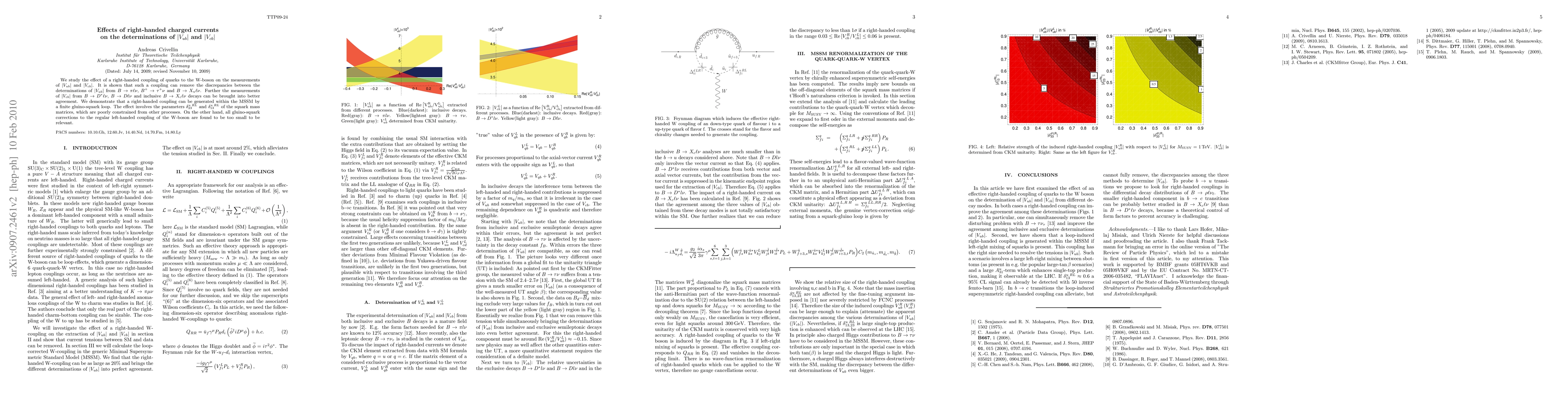 We study the effect of a right-handed coupling of quarks to the W-boson on the measurements of |V_ub| and |V_cb|. It is shown that such a coupling can remove the discrepancies between the determinations of |V_ub| from B\to\pi\ell\nu, B^+\to\tau^+ \nu and B\to X_u\ell\nu. Further the measurements of |V_cb| from B\to D^*\ell\nu, B\to D\ell\nu and inclusive B\to X_c\ell\nu decays can be brought into better agreement. We demonstrate that a right-handed coupling can be generated within the MSSM by a finite gluino-squark loop. The effect involves the parameters \delta^{u RL}_{23} and \delta^{u RL}_{13} of the squark mass matrices, which are poorly constrained from other processes. On the other hand, all gluino-squark corrections to the regular left-handed coupling of the W-boson are found to be too small to be relevant.