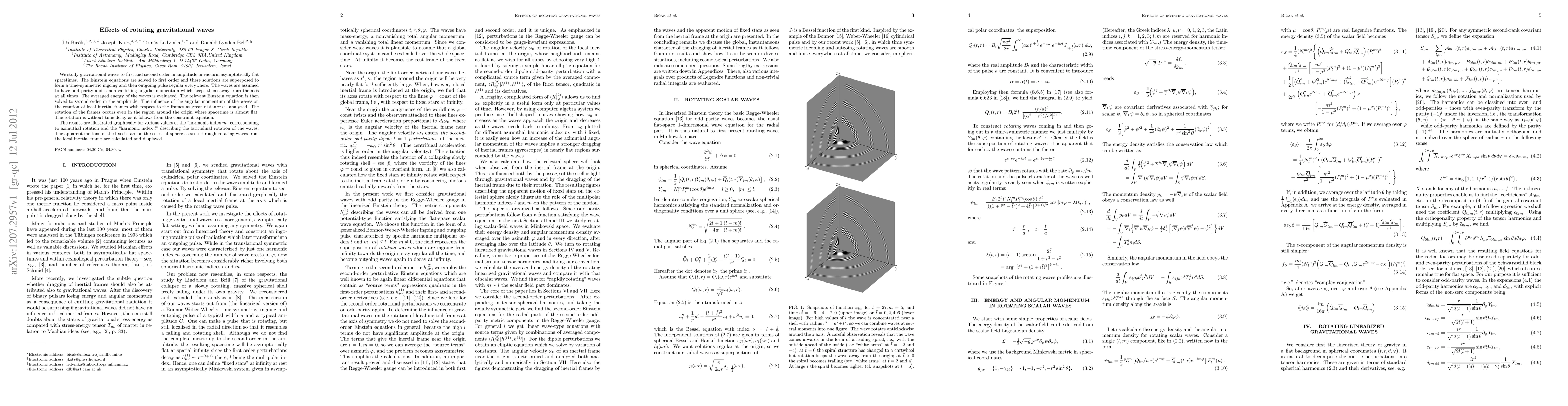 This paper investigates rotating gravitational waves in asymptotically flat spacetimes, solving the Einstein equations to first and second order. It examines the angular momentum's effect on the rotation of local inertial frames and illustrates the apparent motion of fixed stars through these waves.