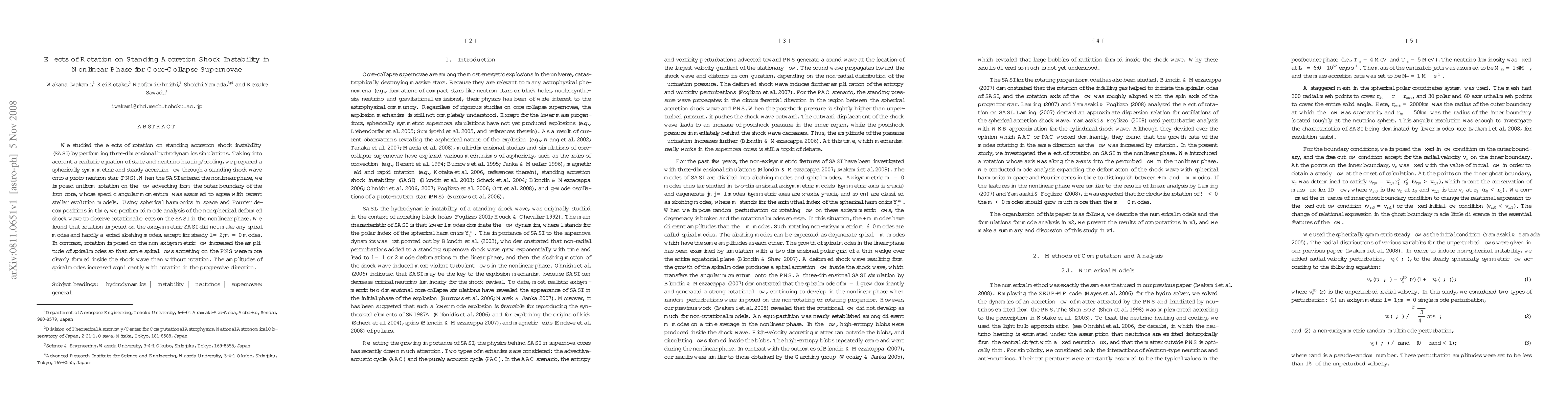 This study investigates the impact of rotation on the standing accretion shock instability (SASI) in core-collapse supernovae using 3D hydrodynamics simulations. Rotation enhances the amplitude of spiral modes in non-axisymmetric flows, leading to clearer accretion flows onto the proto-neutron star compared to non-rotating conditions.