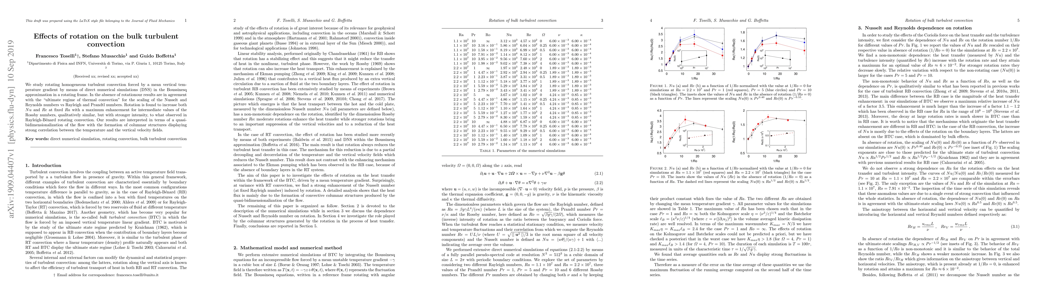 This study investigates the impact of rotation on turbulent convection using direct numerical simulations, finding that rotation enhances both Nusselt and Reynolds numbers, with maximum effects at intermediate Rossby numbers, due to the quasi-bidimensionalization of the flow and formation of columnar structures.