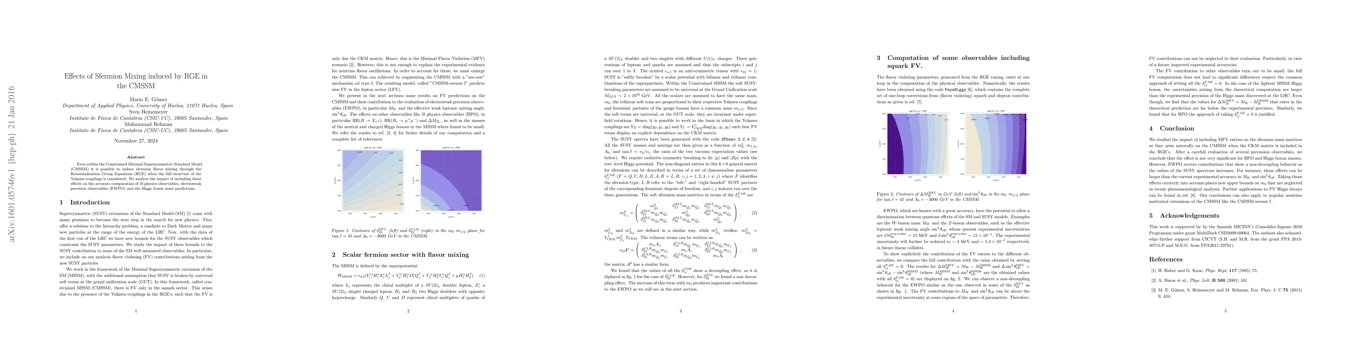 Even within the Constrained Minimal Supersymmetric Standard Model (CMSSM) it is possible to induce sfermion flavor mixing through the Renormalization Group Equations (RGE) when the full structure of the Yukawa couplings is considered. We analyse the impact of including those effects on the accurate computation of $B$-physics observables, electroweak precision observables (EWPO) and the Higgs boson mass predictions.