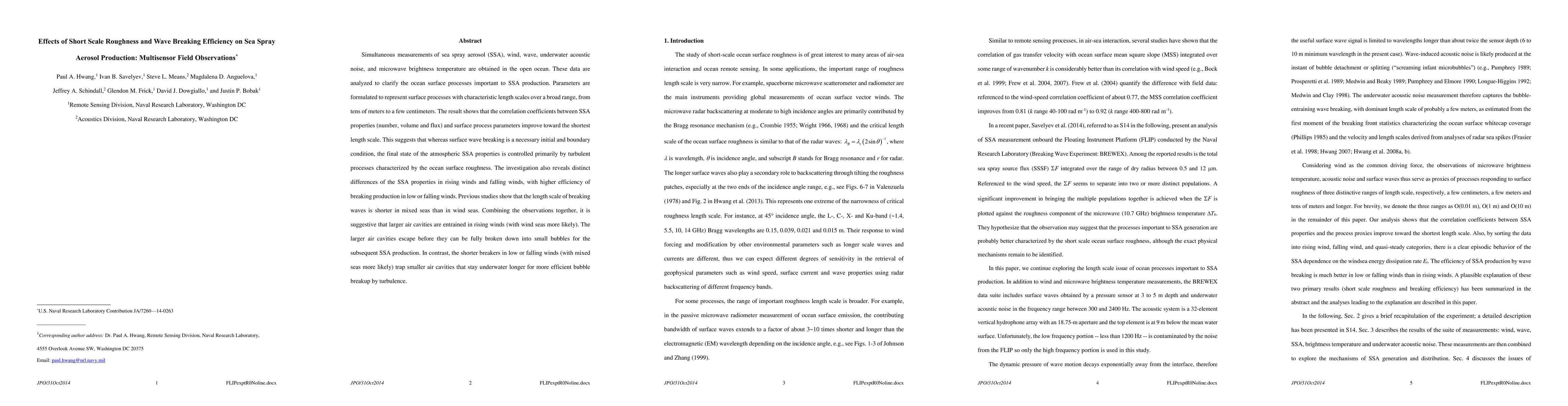 Simultaneous measurements of sea spray aerosol (SSA), wind, wave, underwater acoustic noise, and microwave brightness temperature are obtained in the open ocean. These data are analyzed to clarify the ocean surface processes important to SSA production. Parameters are formulated to represent surface processes with characteristic length scales over a broad range, from tens of meters to a few centimeters. The result shows that the correlation coefficients between SSA properties (number, volume and flux) and surface process parameters improve toward the shortest length scale. This suggests that whereas surface wave breaking is a necessary initial and boundary condition, the final state of the atmospheric SSA properties is controlled primarily by turbulent processes characterized by the ocean surface roughness. The investigation also reveals distinct differences of the SSA properties in rising winds and falling winds, with higher efficiency of breaking production in low or falling winds. Previous studies show that the length scale of breaking waves is shorter in mixed seas than in wind seas. Combining the observations together, it is suggestive that larger air cavities are entrained in rising winds (with wind seas more likely). The larger air cavities escape before they can be fully broken down into small bubbles for the subsequent SSA production. In contrast, the shorter breakers in low or falling winds (with mixed seas more likely) trap smaller air cavities that stay underwater longer for more efficient bubble breakup by turbulence.
