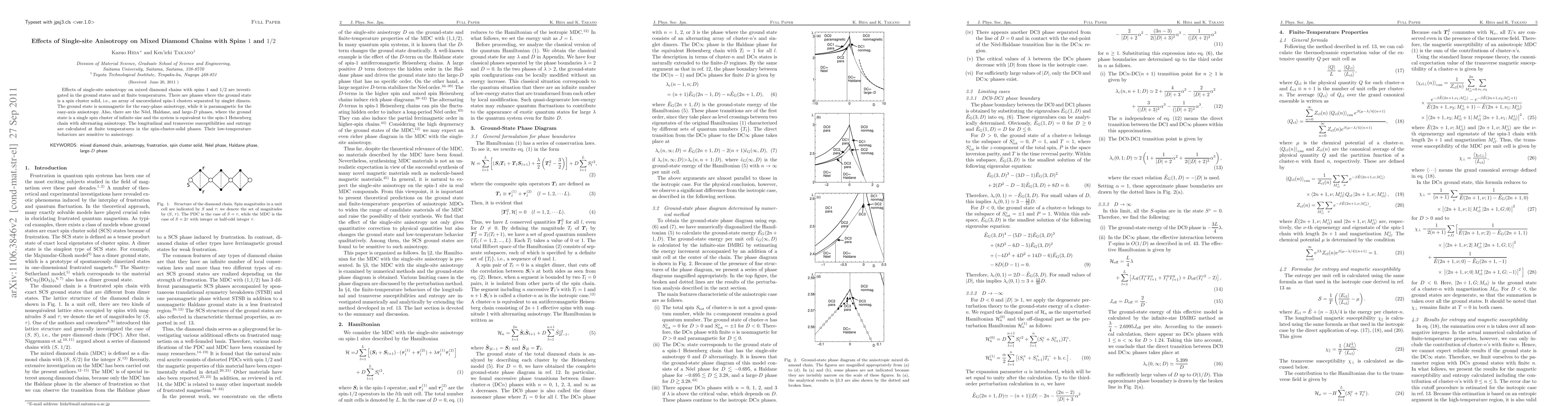 This paper investigates the impact of single-site anisotropy on mixed diamond chains containing spin 1 and 1/2 particles, revealing distinct ground state phases including spin cluster solids and N\'eel, Haldane, and large-$D$ phases. The study also examines the system's susceptibilities and entropy at finite temperatures, highlighting anisotropy-dependent low-temperature behaviors.