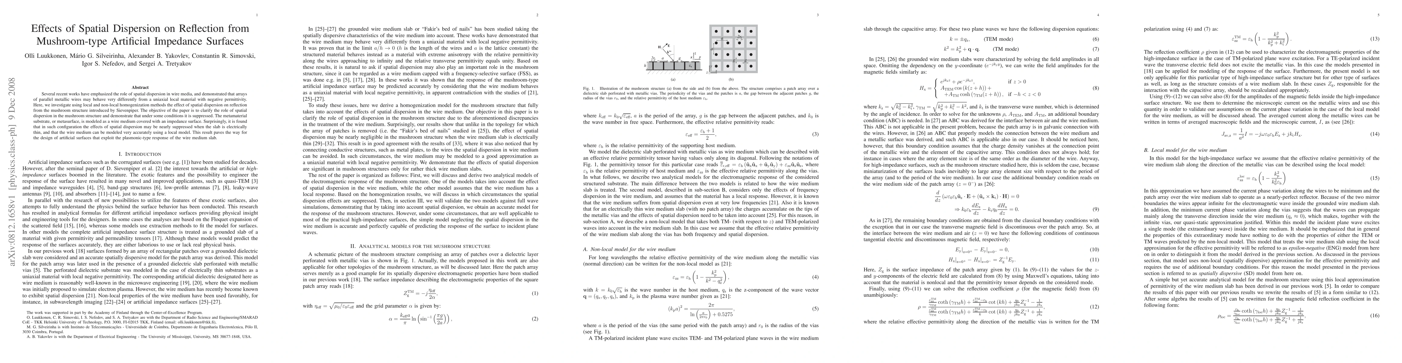 Several recent works have emphasized the role of spatial dispersion in wire media, and demonstrated that arrays of parallel metallic wires may behave very differently from a uniaxial local material with negative permittivity. Here, we investigate using local and non-local homogenization methods the effect of spatial dispersion on reflection from the mushroom structure introduced by Sievenpiper. The objective of the paper is to clarify the role of spatial dispersion in the mushroom structure and demonstrate that under some conditions it is suppressed. The metamaterial substrate, or metasurface, is modeled as a wire medium covered with an impedance surface. Surprisingly, it is found that in such configuration the effects of spatial dispersion may be nearly suppressed when the slab is electrically thin, and that the wire medium can be modeled very accurately using a local model. This result paves the way for the design of artificial surfaces that exploit the plasmonic-type response of the wire medium slab.