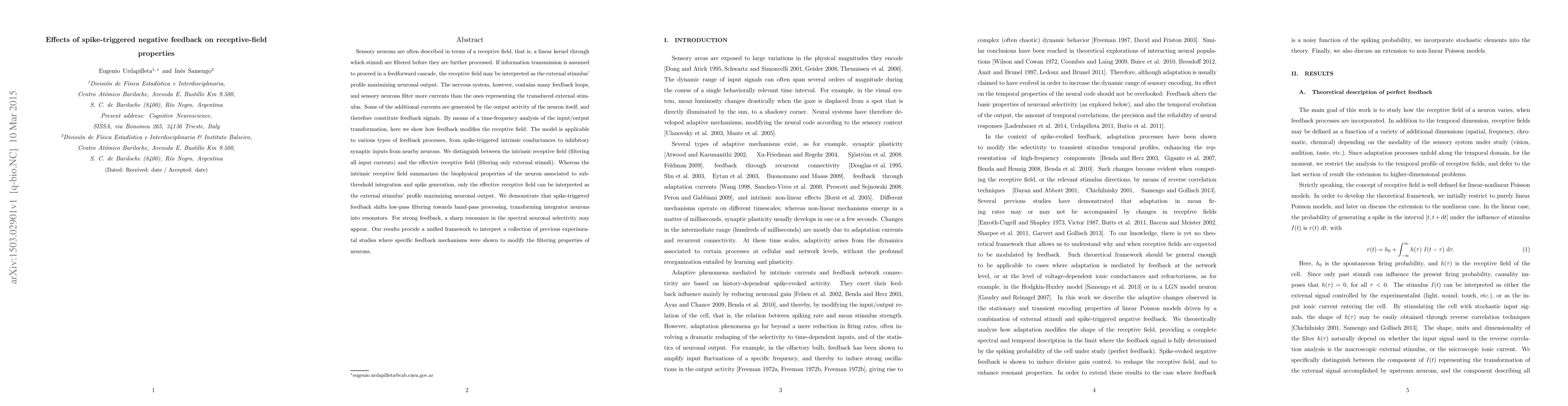 This paper explores how spike-triggered negative feedback alters the receptive field properties of sensory neurons, distinguishing between intrinsic and effective receptive fields. It demonstrates that such feedback can transform low-pass filtering into band-pass processing, effectively turning integrator neurons into resonators.