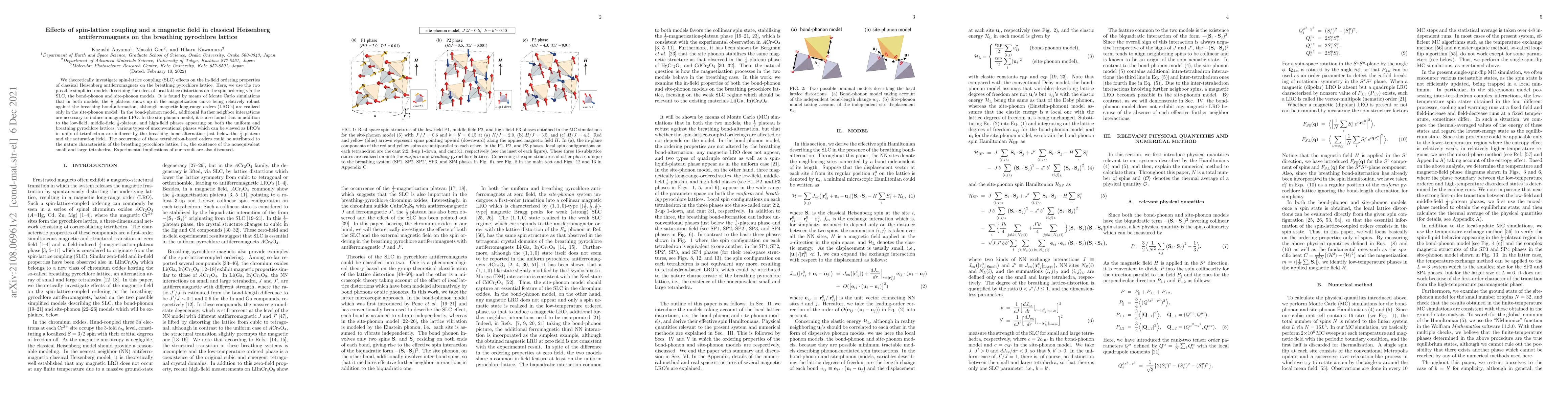 This paper investigates the effects of spin-lattice coupling on classical Heisenberg antiferromagnets on a breathing pyrochlore lattice using Monte Carlo simulations. It finds that both bond-phonon and site-phonon models exhibit a $\frac{1}{2}$ plateau in magnetization, but only the site-phonon model realizes magnetic long-range order, with additional unconventional tetrahedron-based phases emerging due to lattice distortions.