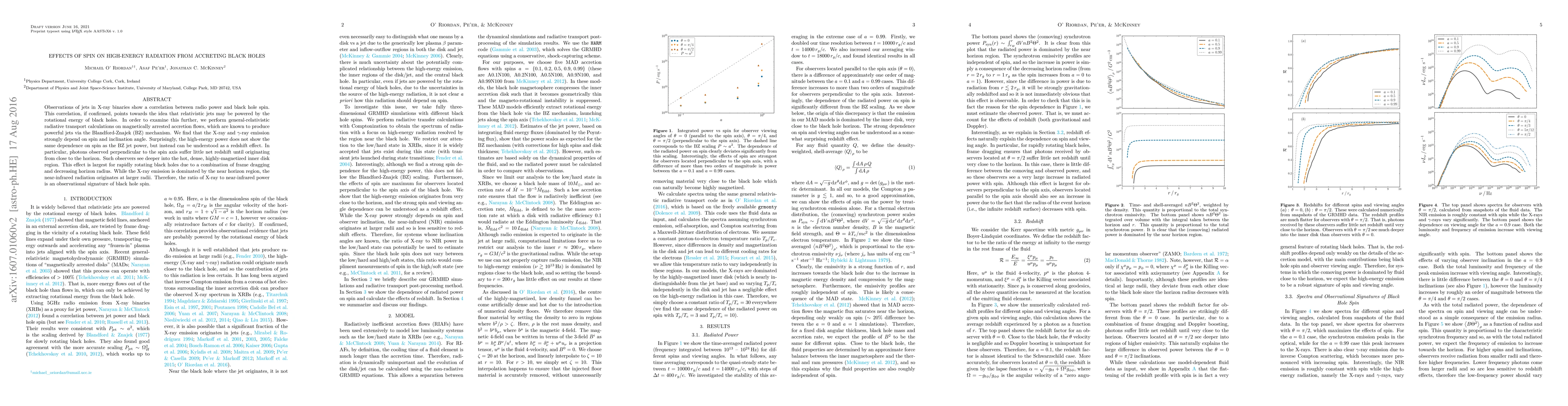 Observations of jets in X-ray binaries show a correlation between radio power and black hole spin. This correlation, if confirmed, points towards the idea that relativistic jets may be powered by the rotational energy of black holes. In order to examine this further, we perform general-relativistic radiative transport calculations on magnetically arrested accretion flows, which are known to produce powerful jets via the Blandford-Znajek (BZ) mechanism. We find that the X-ray and gamma-ray emission strongly depend on spin and inclination angle. Surprisingly, the high-energy power does not show the same dependence on spin as the BZ jet power, but instead can be understood as a redshift effect. In particular, photons observed perpendicular to the spin axis suffer little net redshift until originating from close to the horizon. Such observers see deeper into the hot, dense, highly-magnetized inner disk region. This effect is largest for rapidly rotating black holes due to a combination of frame dragging and decreasing horizon radius. While the X-ray emission is dominated by the near horizon region, the near-infrared radiation originates at larger radii. Therefore, the ratio of X-ray to near-infrared power is an observational signature of black hole spin.