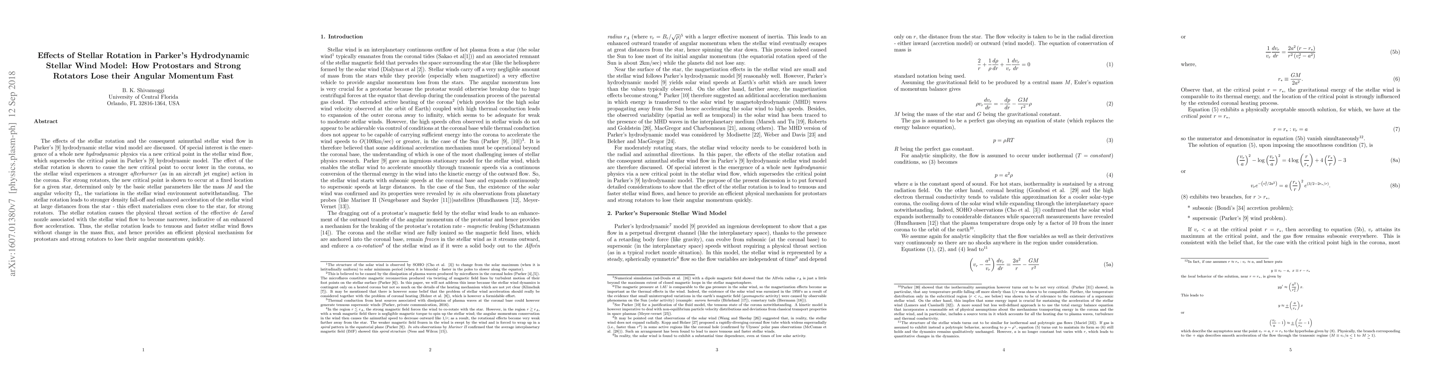 The effects of the stellar rotation and the consequent azimuthal stellar wind flow in Parker's [9] hydrodynamic stellar wind model are discussed. Of special interest is the emergence of a whole new hydrodynamic physics via a new critical point in the stellar wind flow, which supersedes the critical point in Parker's [9] hydrodynamic model. The effect of the stellar rotation is shown to cause the new critical point to occur lower in the corona, so the stellar wind experiences a stronger afterburner (as in an aircraft jet engine) action in the corona. For strong rotators, the new critical point is shown to occur at a fixed location for a given star, determined only by the basic stellar parameters like the mass M and the angular velocity, the variations in the stellar wind environment notwithstanding. The stellar rotation leads to stronger density fall-off and enhanced acceleration of the stellar wind at large distances from the star - this effect materializes even close to the star, for strong rotators. The stellar rotation causes the physical throat section of the effective de Laval nozzle associated with the stellar wind flow to become narrower, indicative of an enhanced flow acceleration. Thus, the stellar rotation leads to tenuous and faster stellar wind flows without change in the mass flux, and hence provides an efficient physical mechanism for protostars and strong rotators to lose their angular momentum quickly.