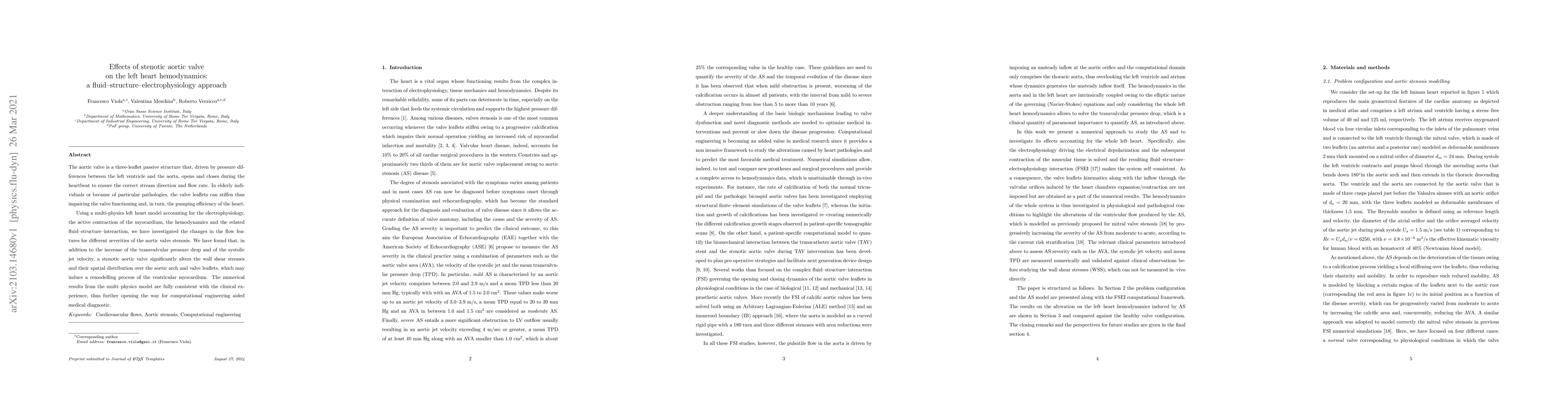 This paper investigates the hemodynamic effects of stenotic aortic valves on left heart dynamics using a fluid-structure-electrophysiology model. It finds that aortic stenosis increases transvalvular pressure drop and alters wall shear stresses, potentially inducing ventricular myocardium remodeling, aligning with clinical observations.
