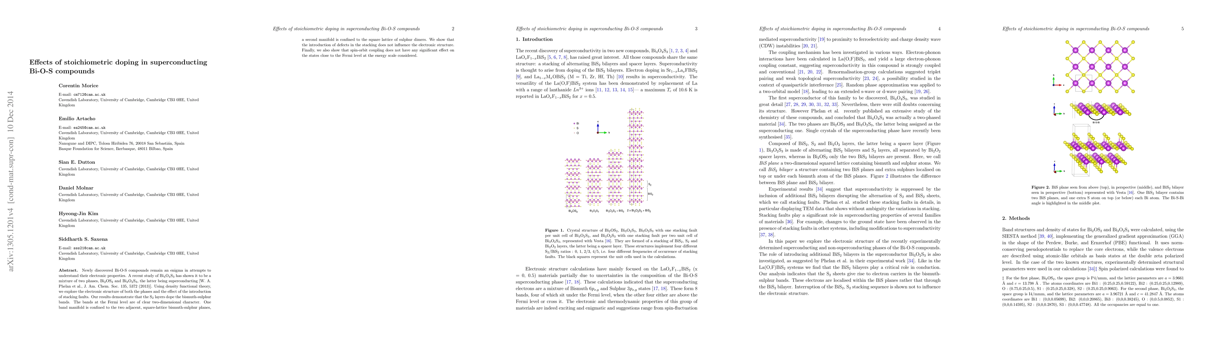 Newly discovered Bi-O-S compounds remain an enigma in attempts to understand their electronic properties. A recent study of Bi$_{4}$O$_{4}$S$_{3}$ has shown it to be a mixture of two phases, Bi$_{2}$OS$_{2}$ and Bi$_{3}$O$_{2}$S$_{3}$, the latter being superconducting [W. A. Phelan et al., J. Am. Chem. Soc. 135, 5372 (2013)]. Using density functional theory, we explore the electronic structure of both the phases and the effect of the introduction of stacking faults. Our results demonstrate that the S$_{2}$ layers dope the bismuth-sulphur bands. The bands at the Fermi level are of clear two-dimensional character. One band manifold is confined to the two adjacent, square-lattice bismuth-sulphur planes, a second manifold is confined to the square lattice of sulphur dimers. We show that the introduction of defects in the stacking does not influence the electronic structure. Finally, we also show that spin-orbit coupling does not have any significant effect on the states close to the Fermi level at the energy scale considered.
