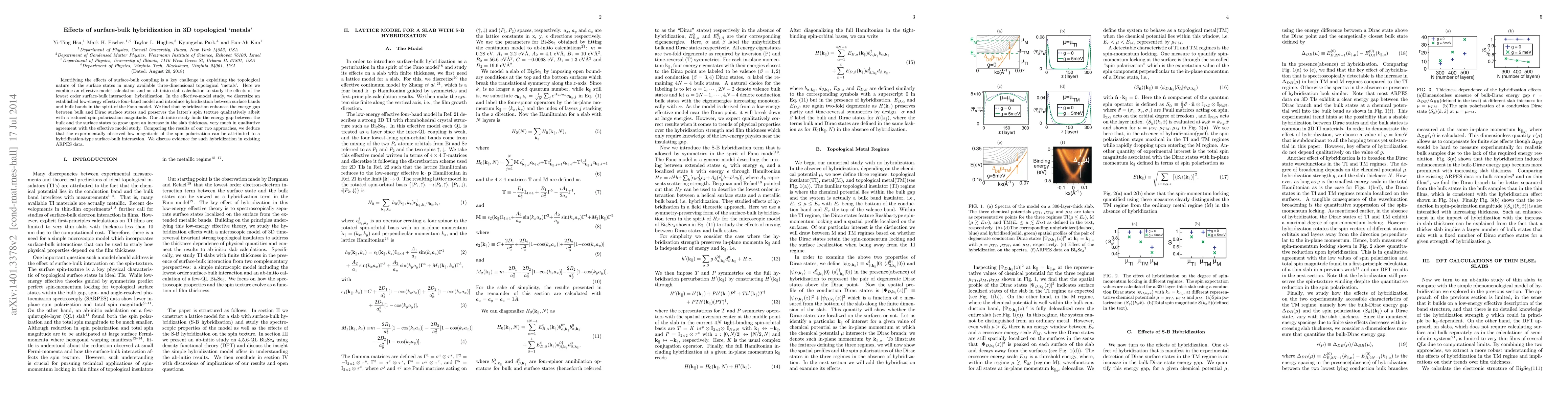 The research combines an effective-model calculation with an ab-initio slab calculation to study the lowest order surface-bulk interaction (hybridization) in 3D topological 'metals'.